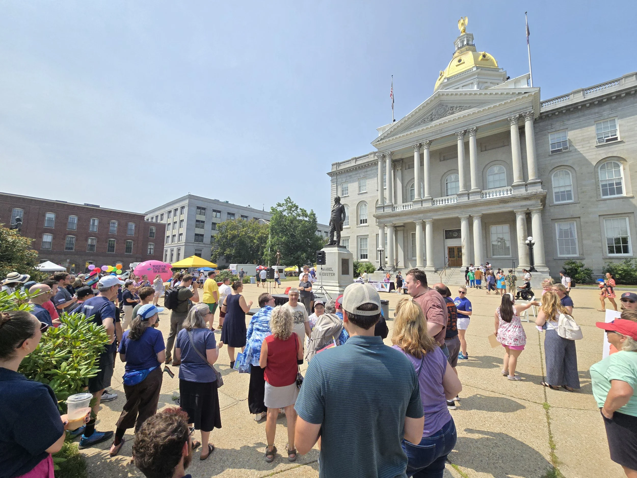 On Saturday, July 26, the lawn of the New Hampshire State House was alive with music, color, and powerful voices as people gathered for the annual Disability Pride Parade, organized by ABLE NH. This year’s celebration carried special significance, marking two major milestones in the disability rights movement: 35 years of the Americans with Disabilities Act (ADA) and 50 years of the Developmental Disabilities Act (DD Act).