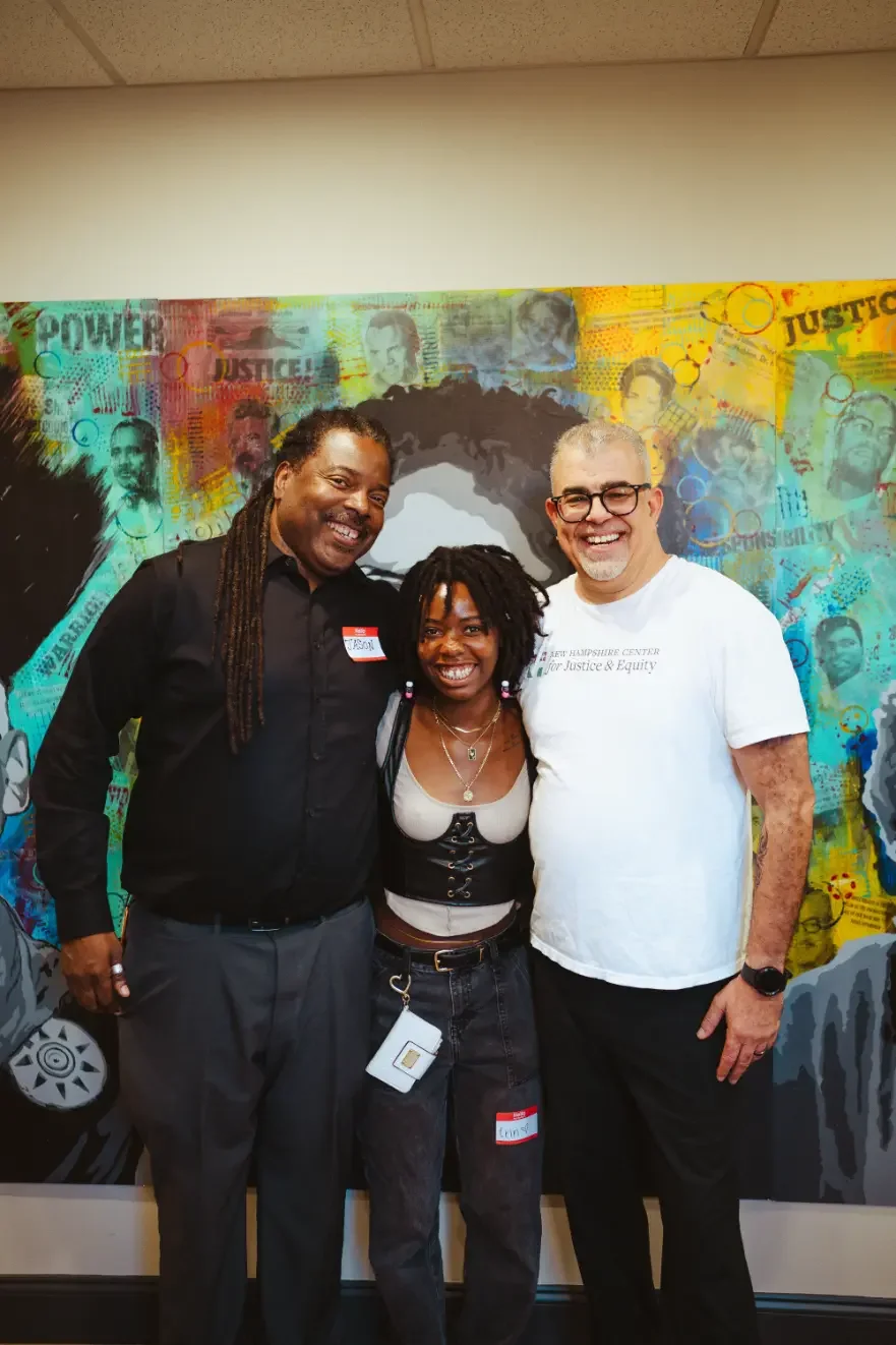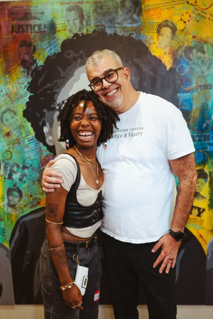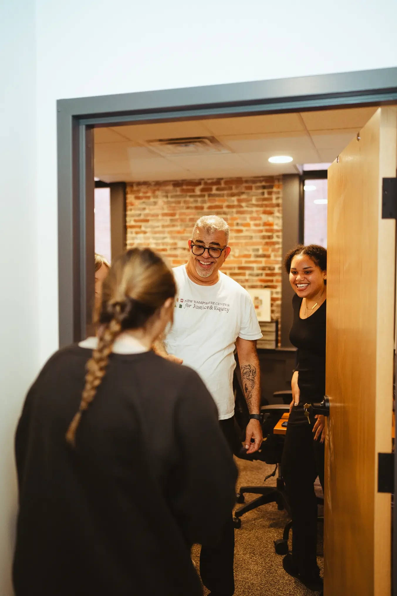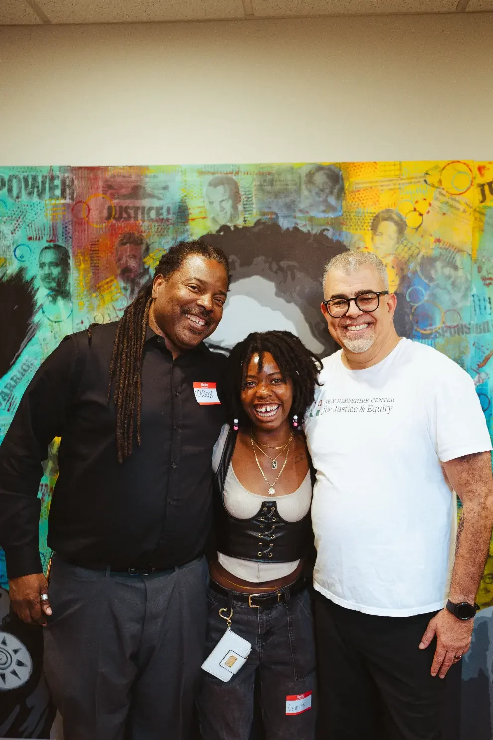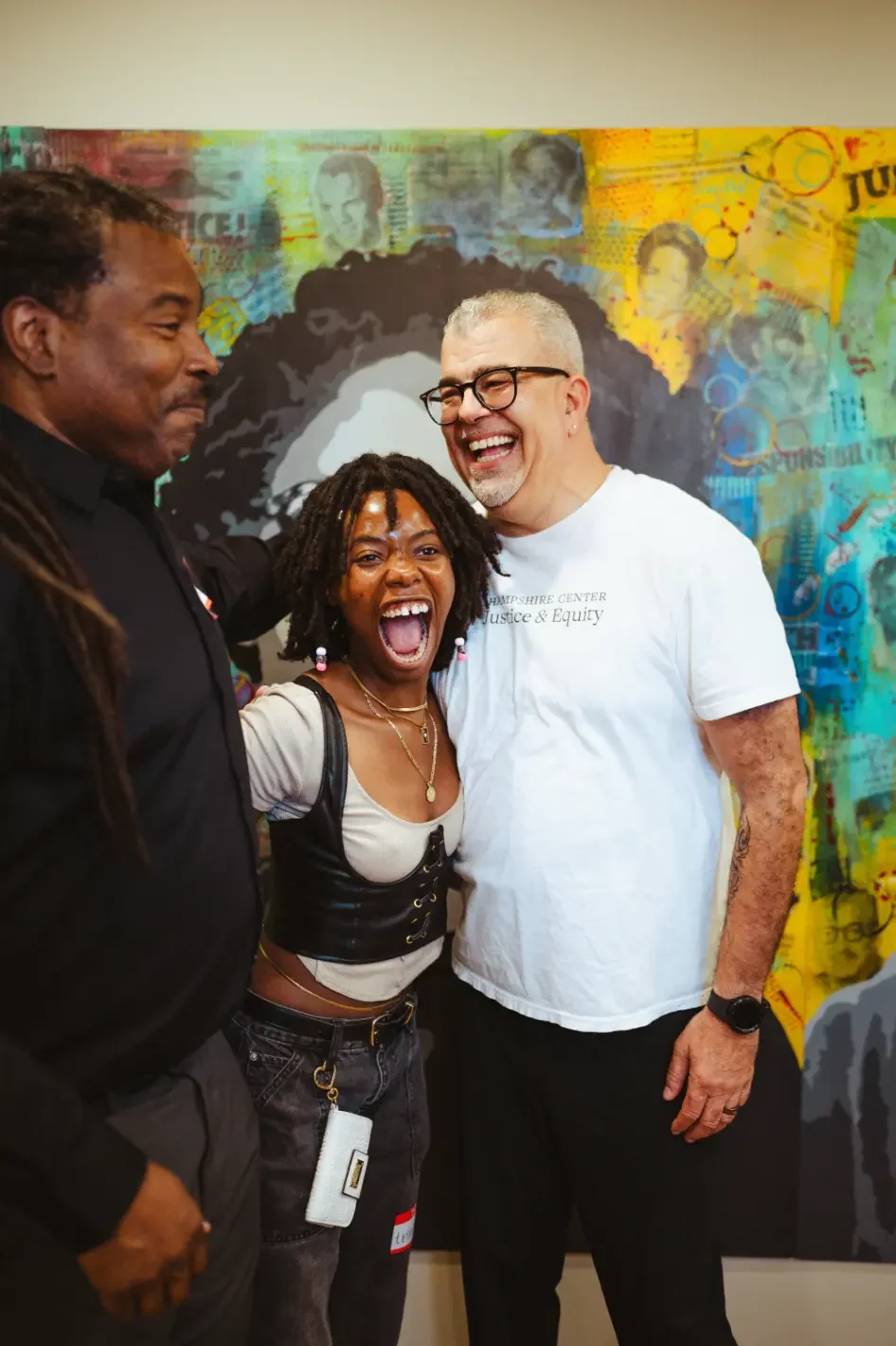 On October 8th, 2025, NHCJE hosted an Open House, to welcome our fellow community neighbors, allies, and colleagues to our new office space in downtown Manchester. The Open House featured an unveiling of a mural created by Positive Street Art for the NHCJE office.