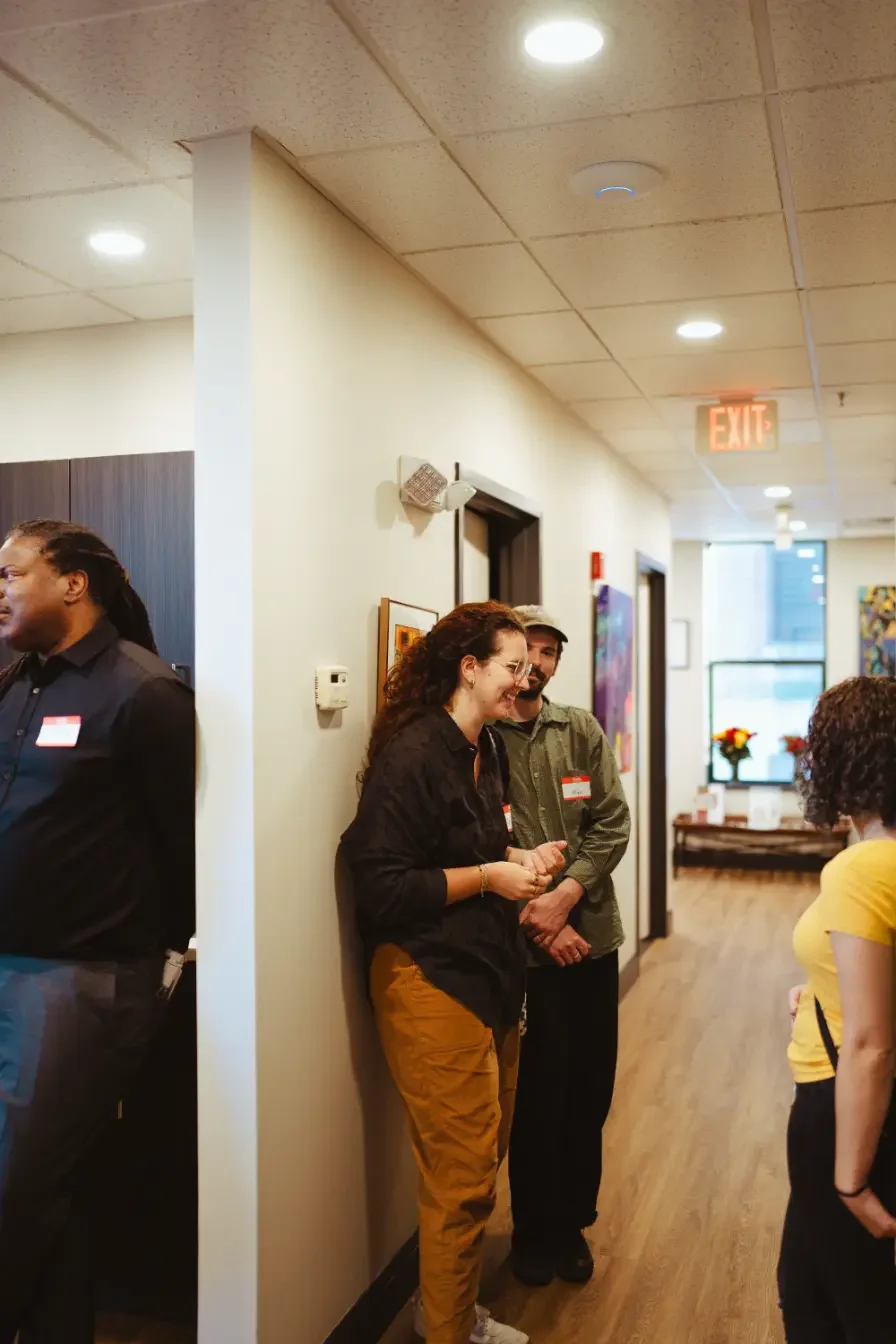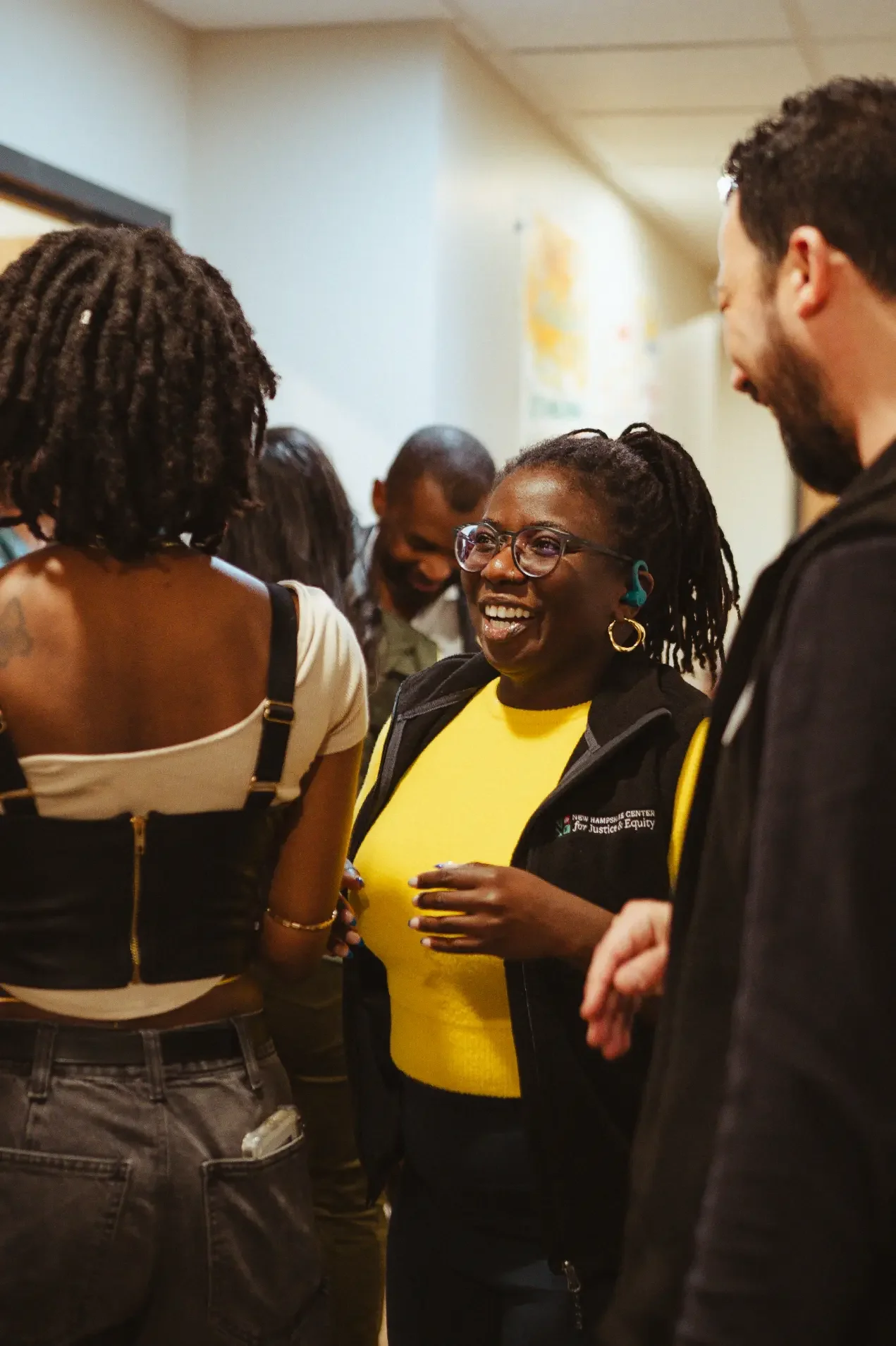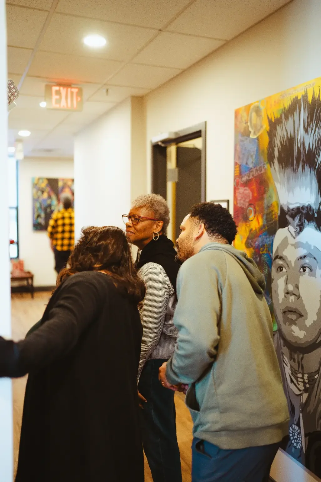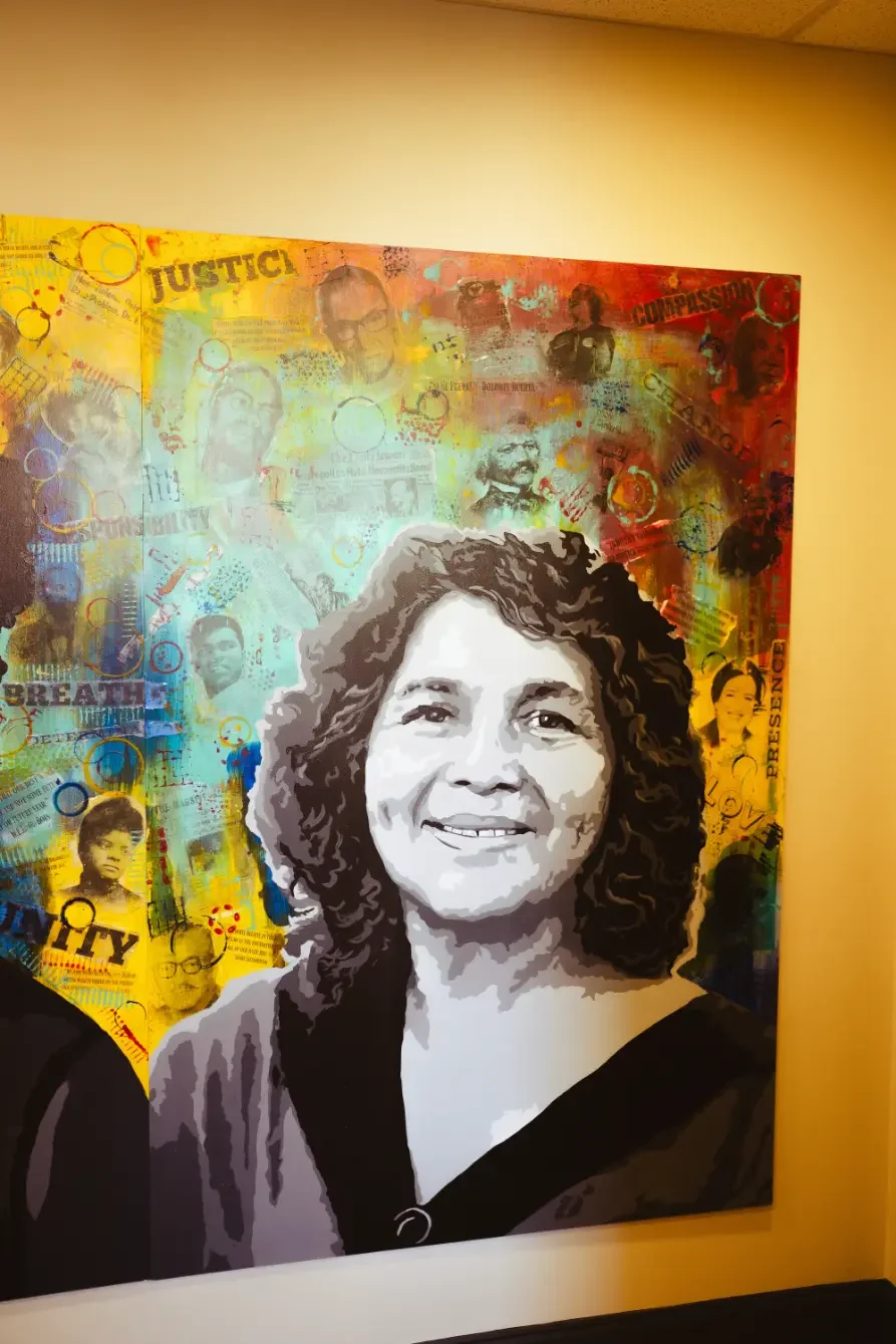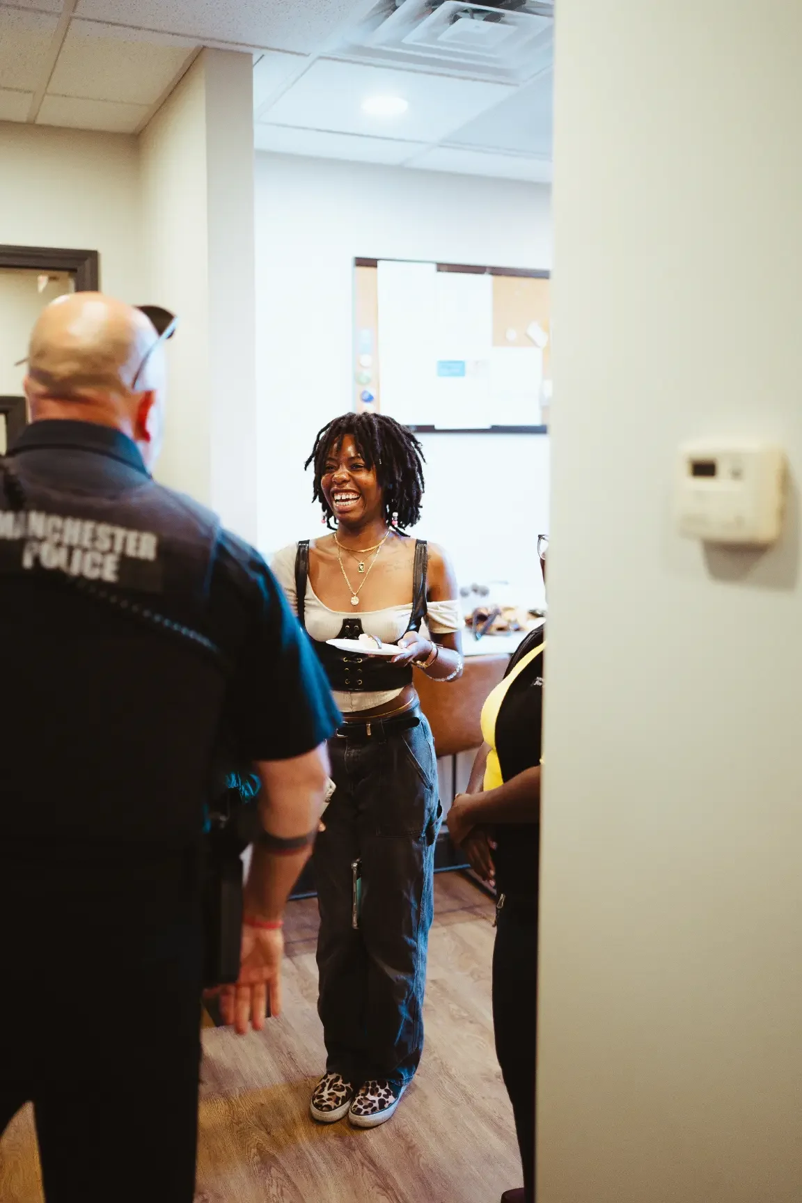 On October 8th, 2025, NHCJE hosted an Open House, to welcome our fellow community neighbors, allies, and colleagues to our new office space in downtown Manchester. The Open House featured an unveiling of a mural created by Positive Street Art for the NHCJE office.