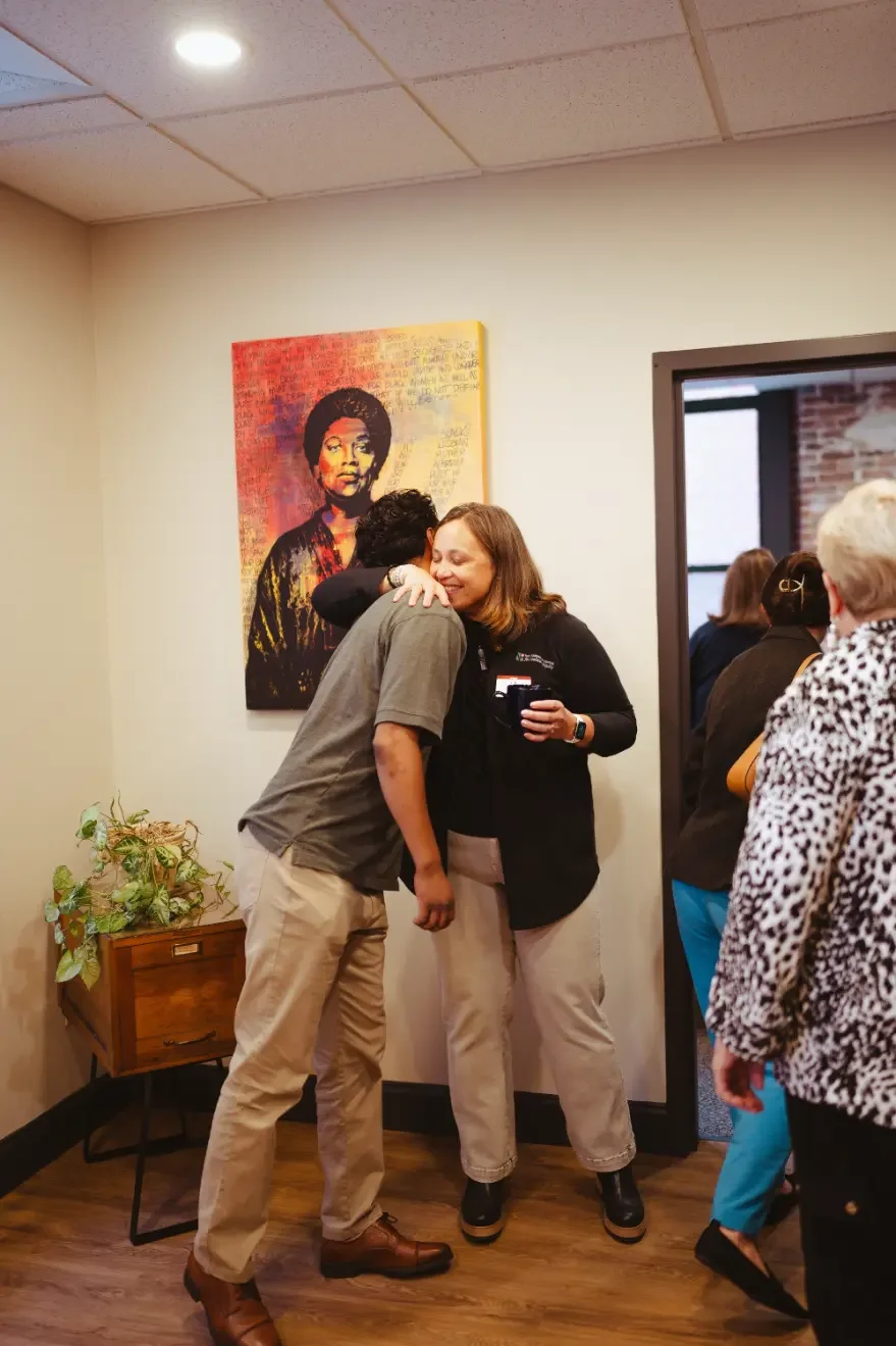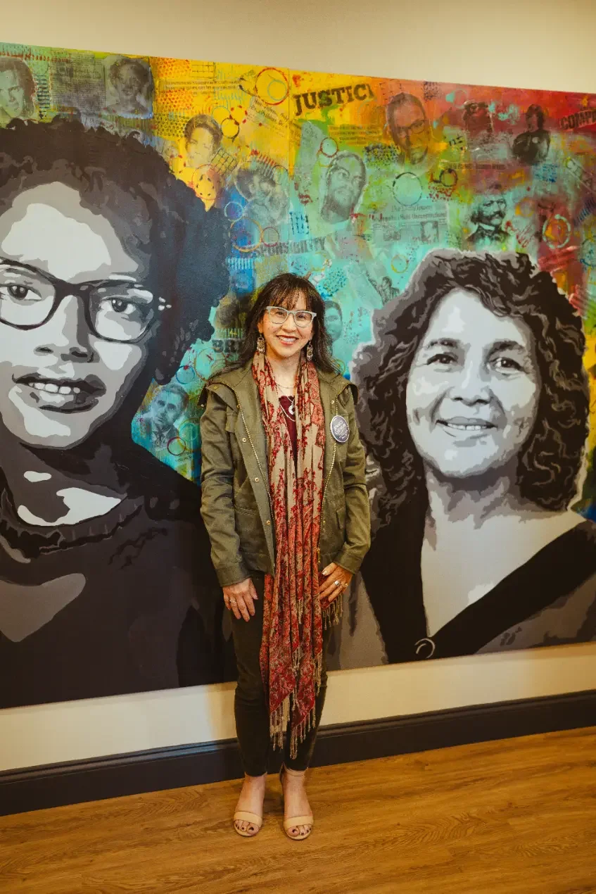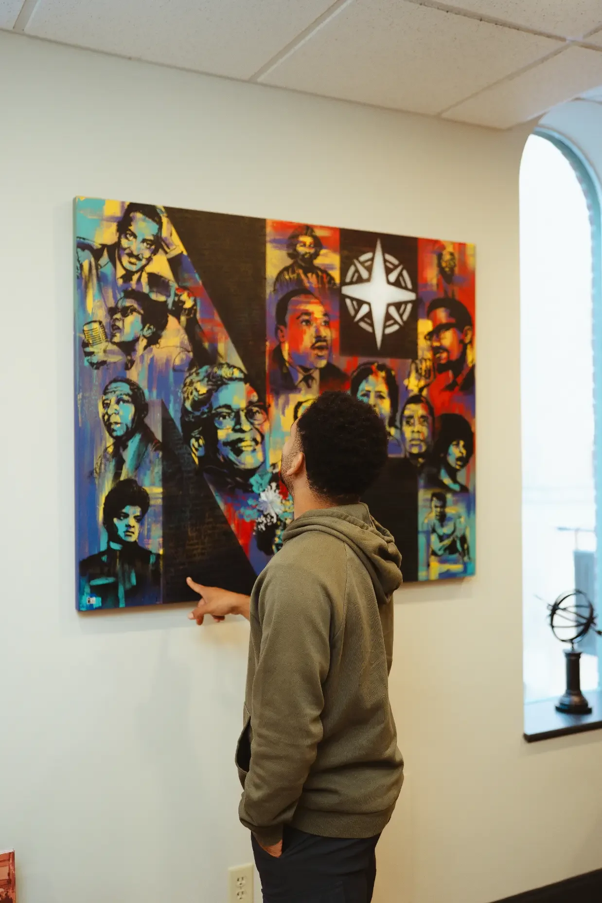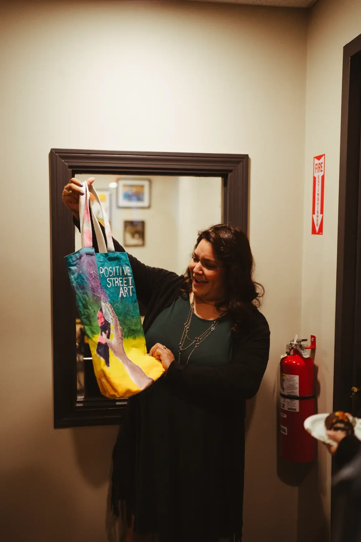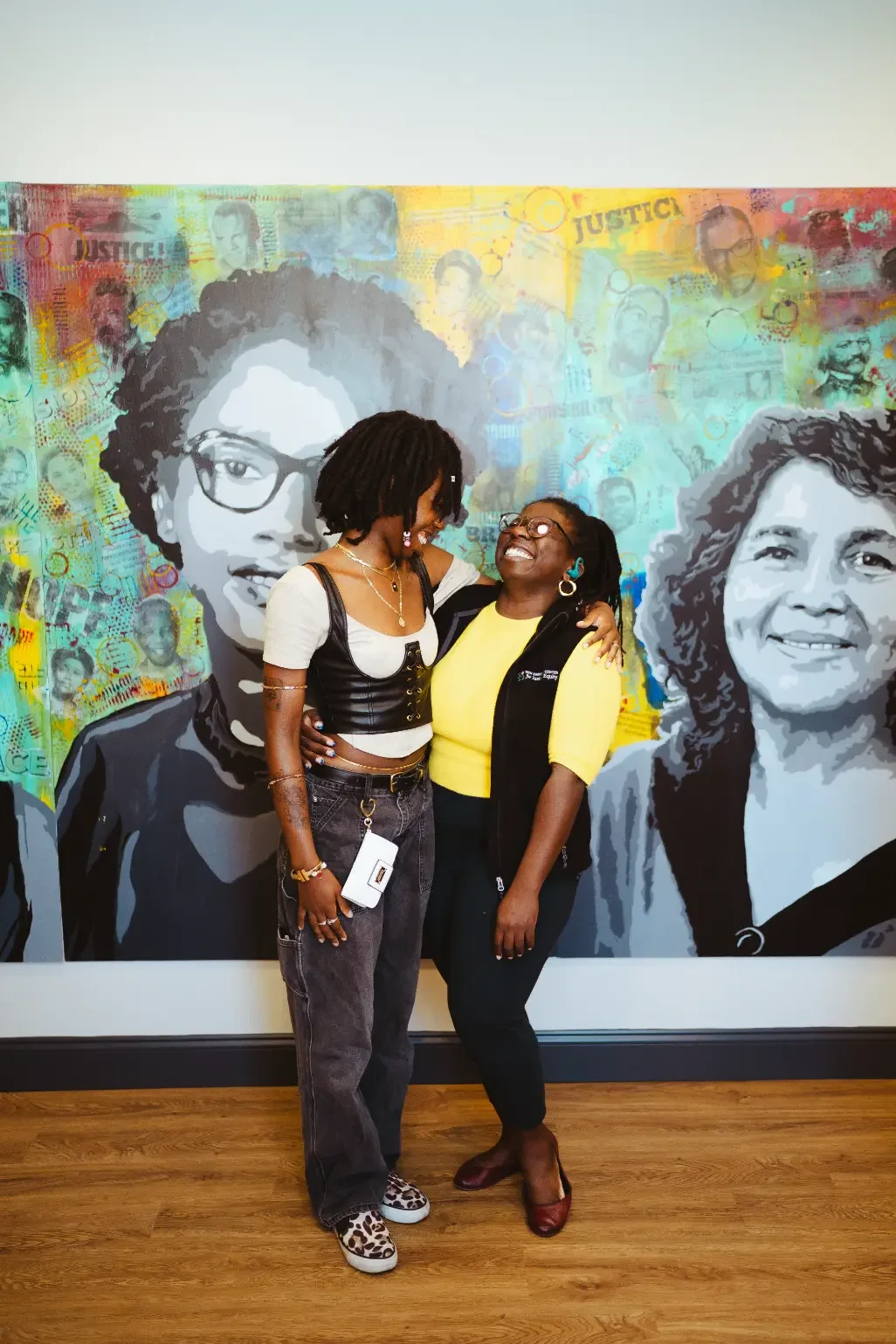 On October 8th, 2025, NHCJE hosted an Open House, to welcome our fellow community neighbors, allies, and colleagues to our new office space in downtown Manchester. The Open House featured an unveiling of a mural created by Positive Street Art for the NHCJE office.