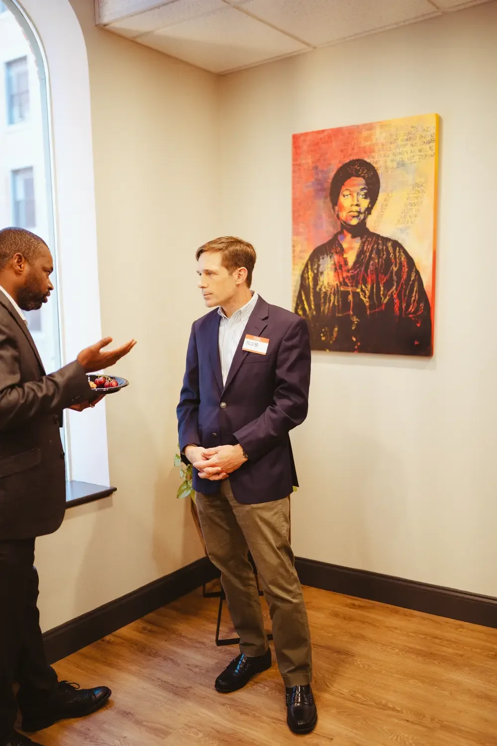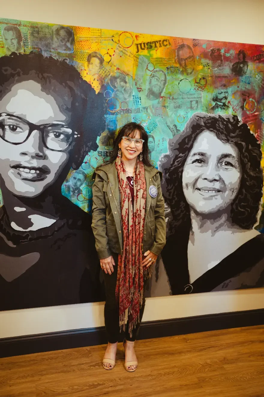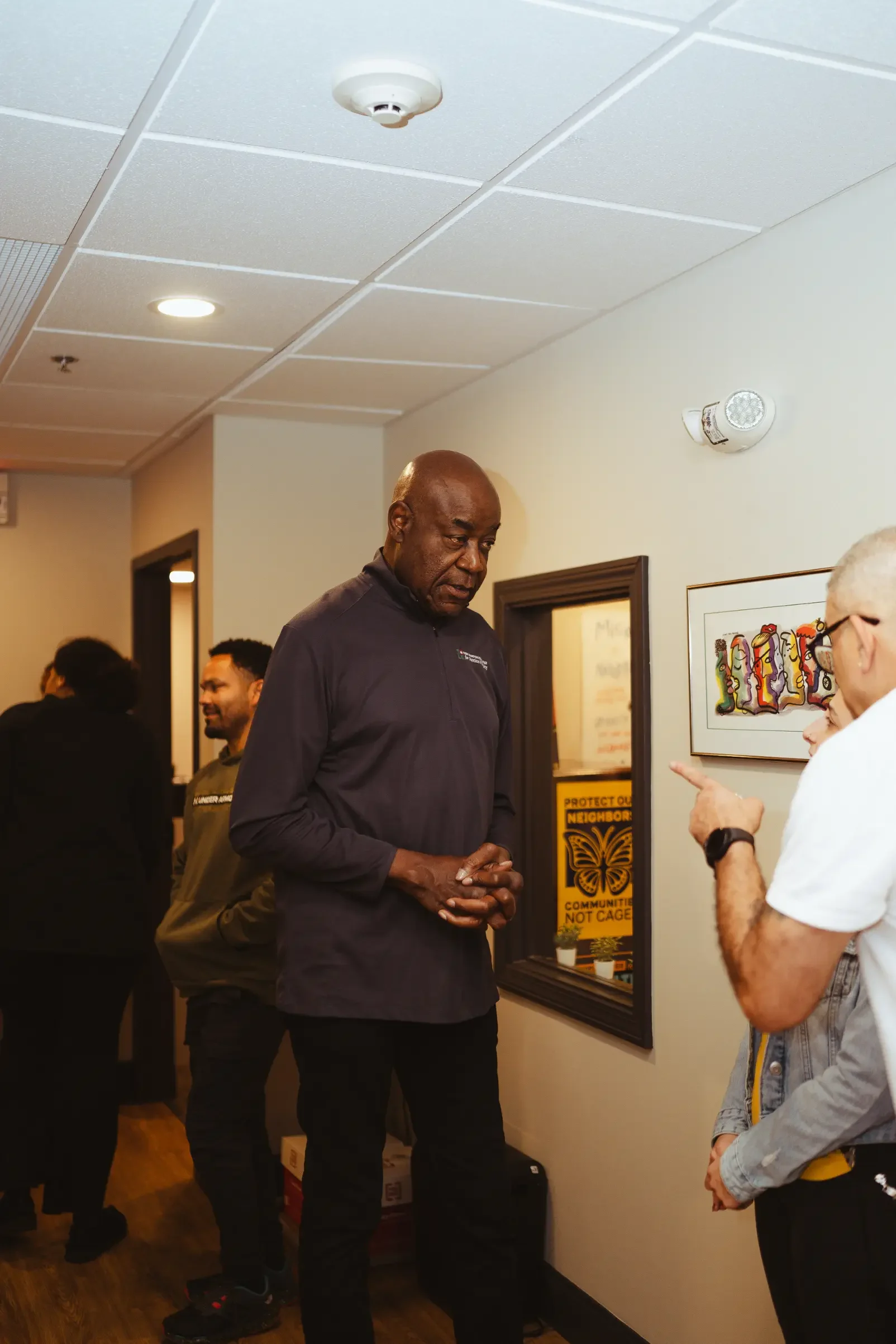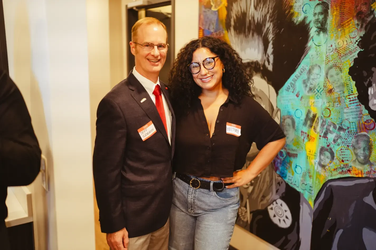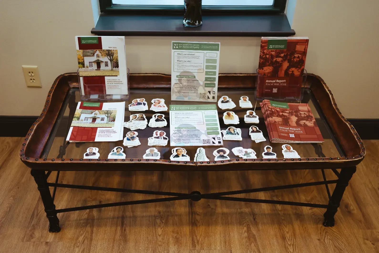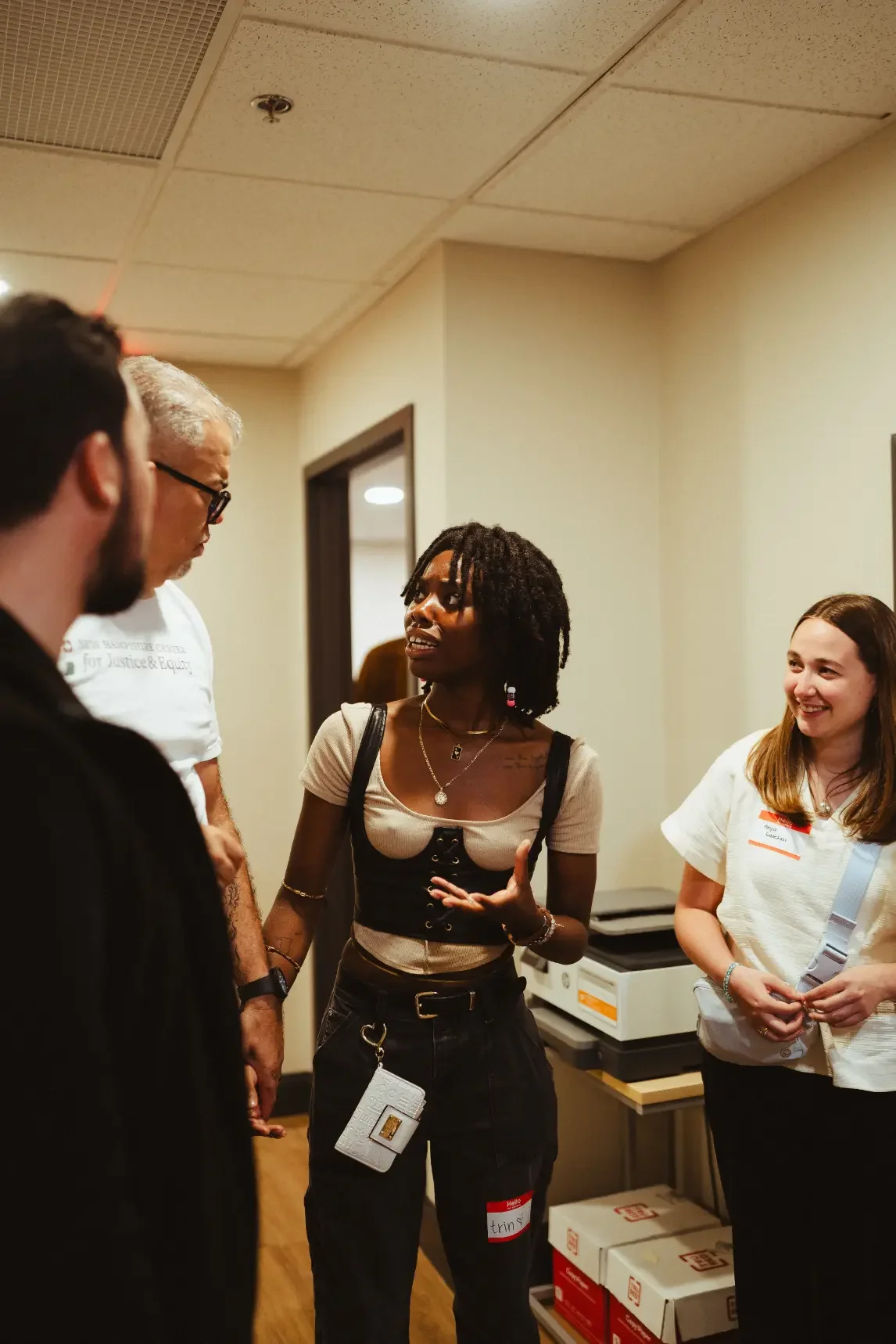 On October 8th, 2025, NHCJE hosted an Open House, to welcome our fellow community neighbors, allies, and colleagues to our new office space in downtown Manchester. The Open House featured an unveiling of a mural created by Positive Street Art for the NHCJE office.