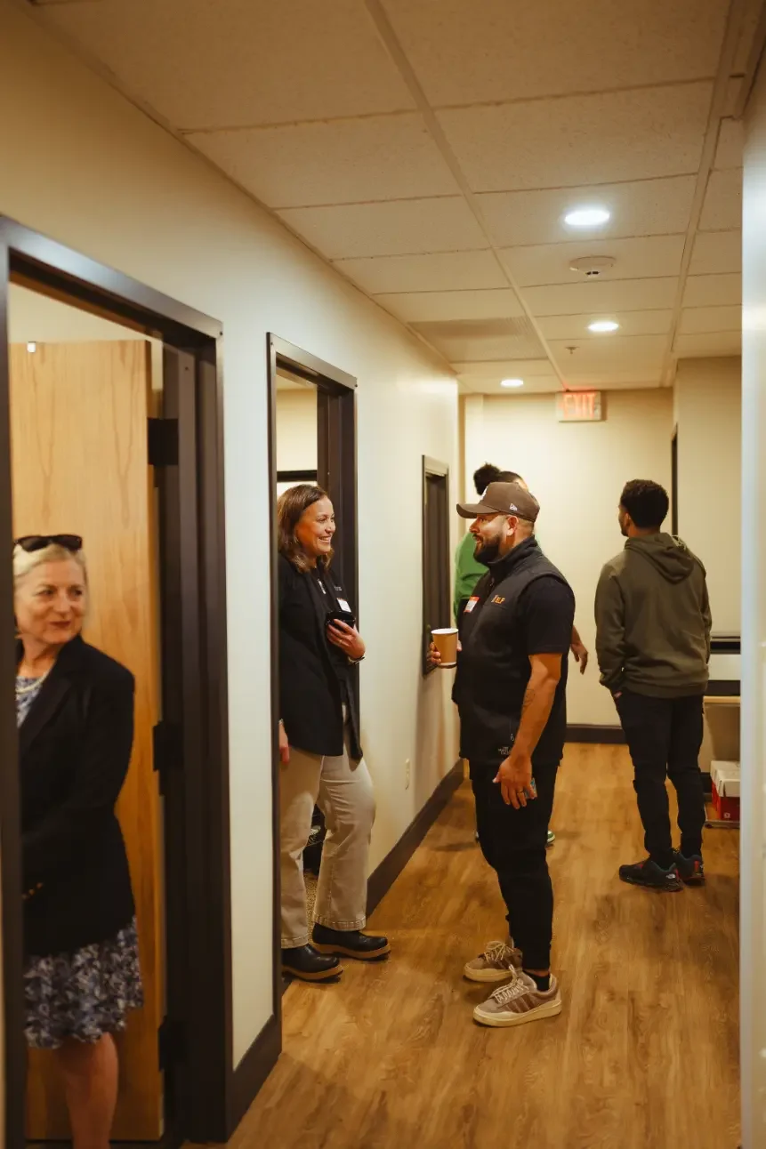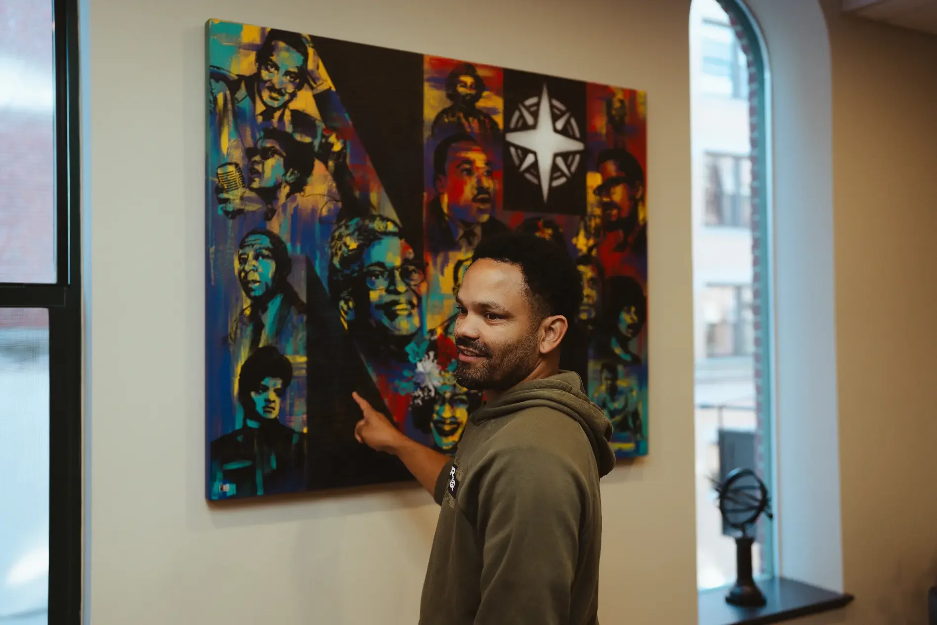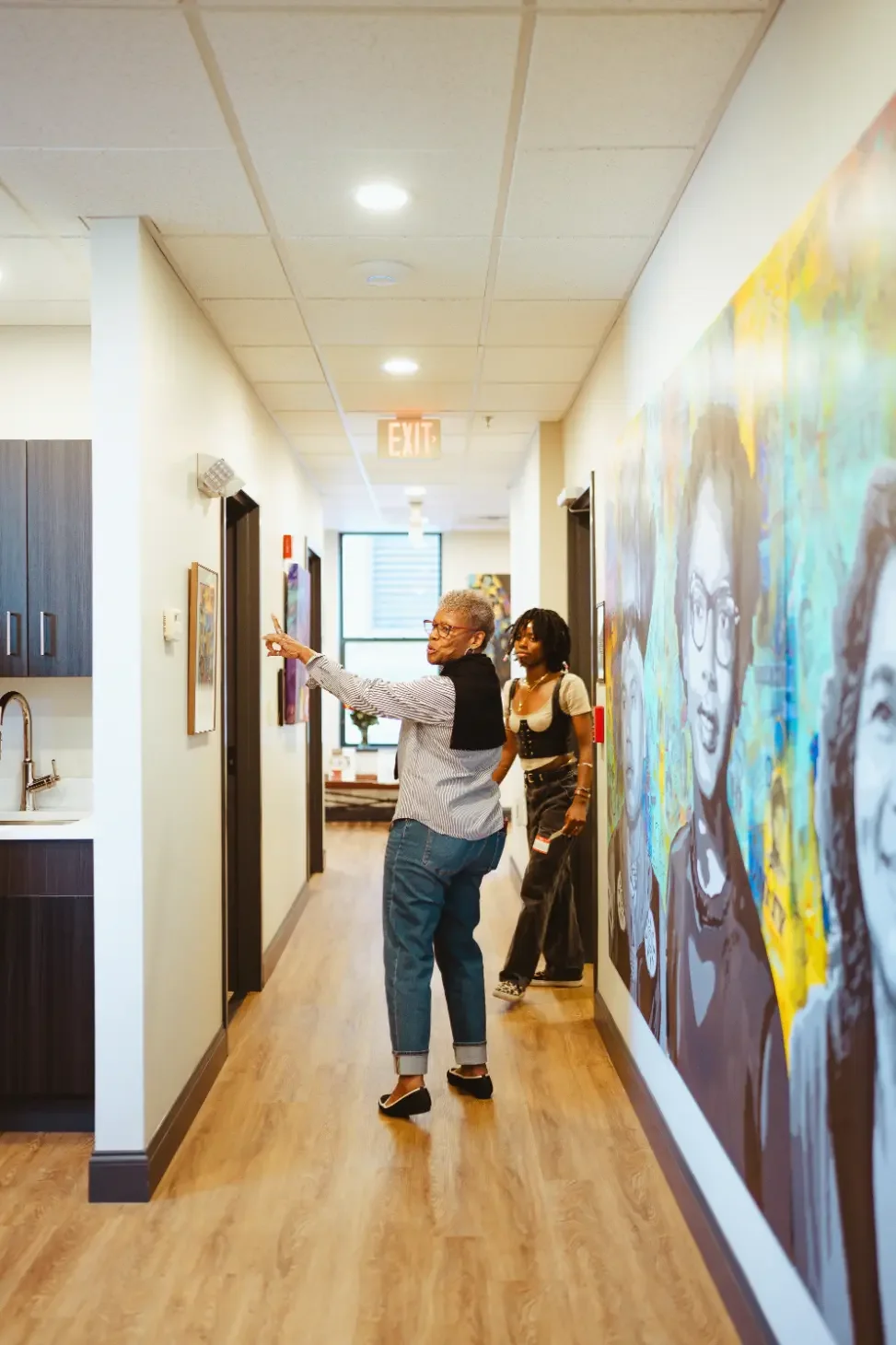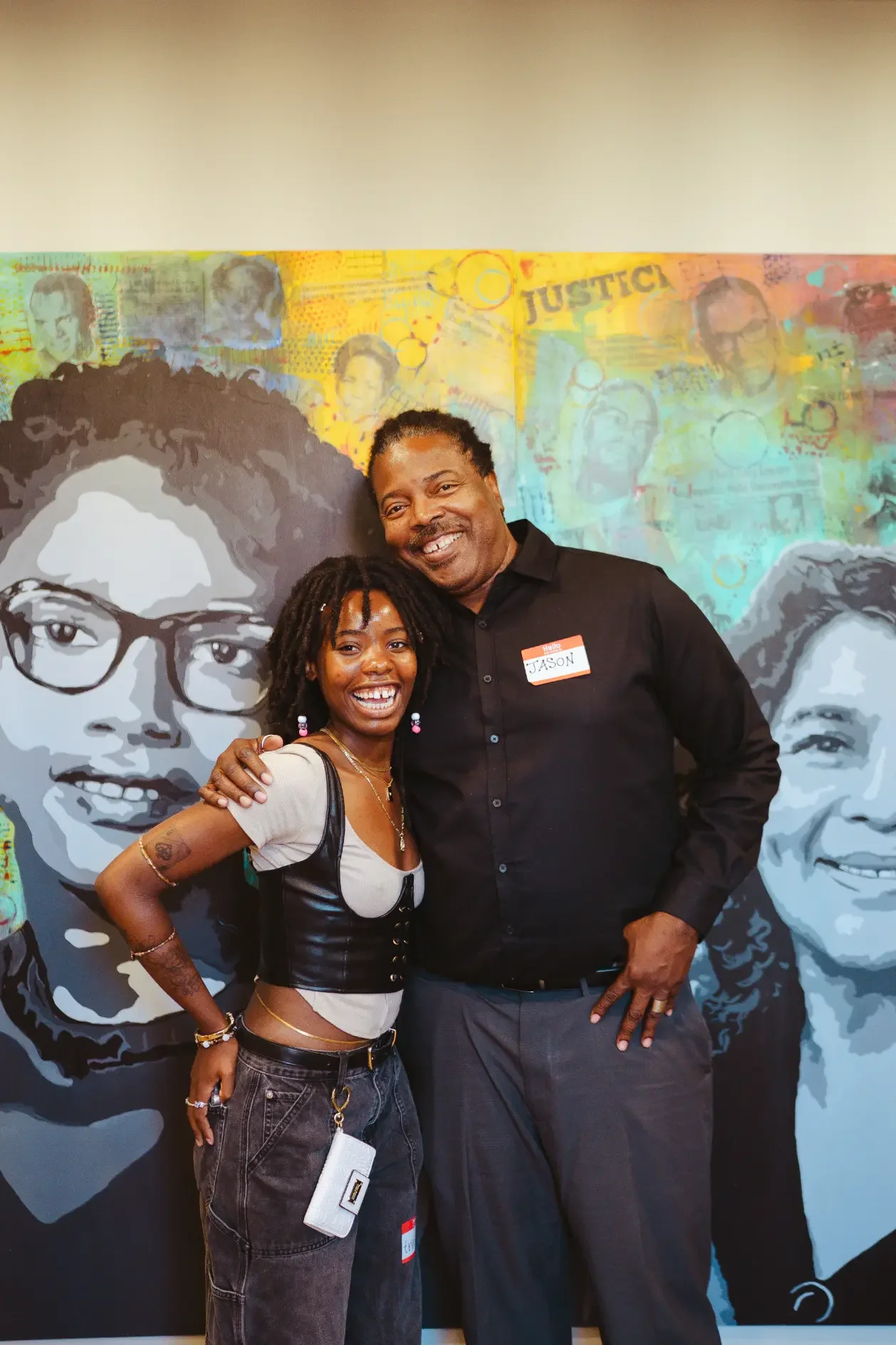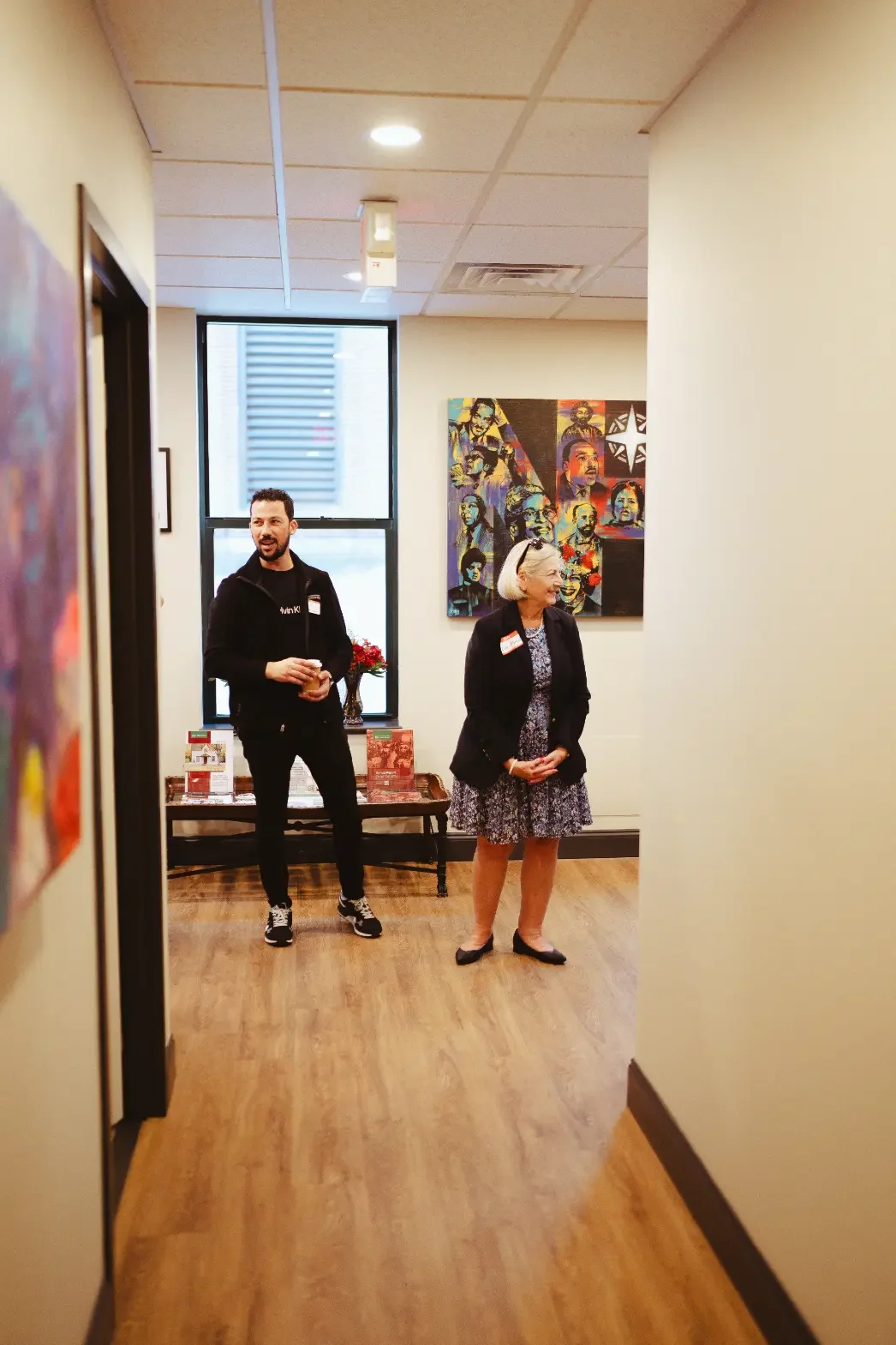 On October 8th, 2025, NHCJE hosted an Open House, to welcome our fellow community neighbors, allies, and colleagues to our new office space in downtown Manchester. The Open House featured an unveiling of a mural created by Positive Street Art for the NHCJE office.