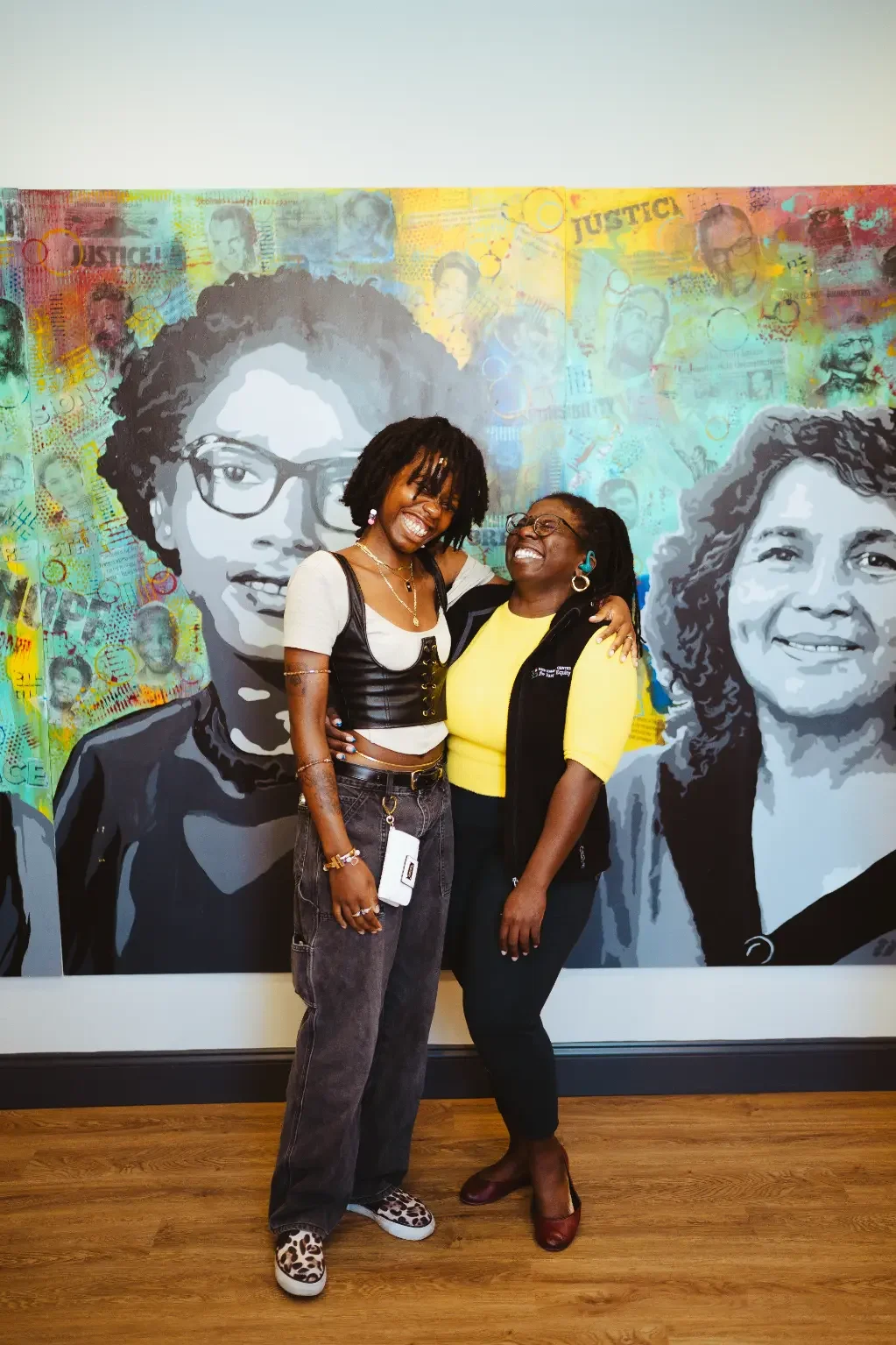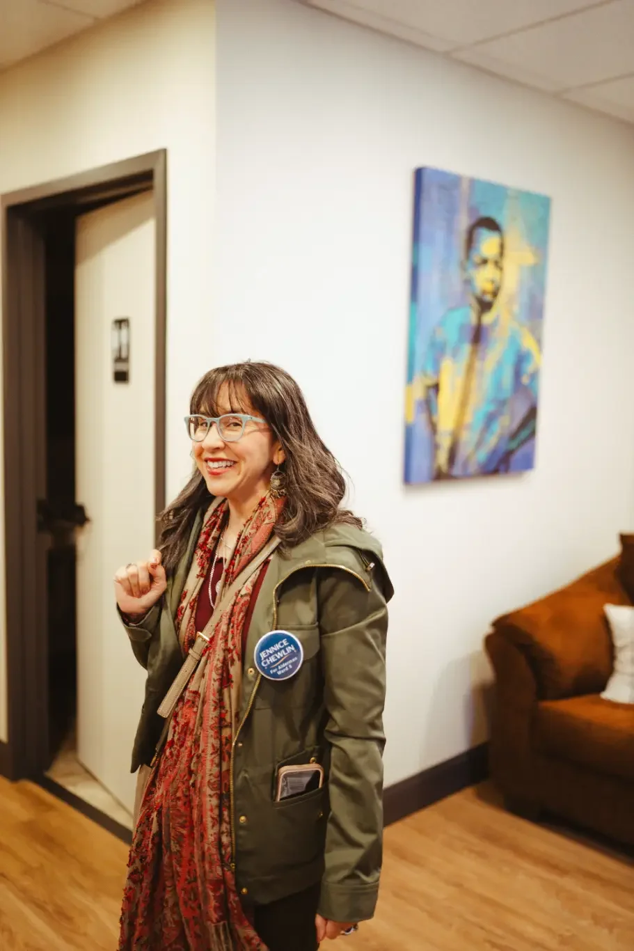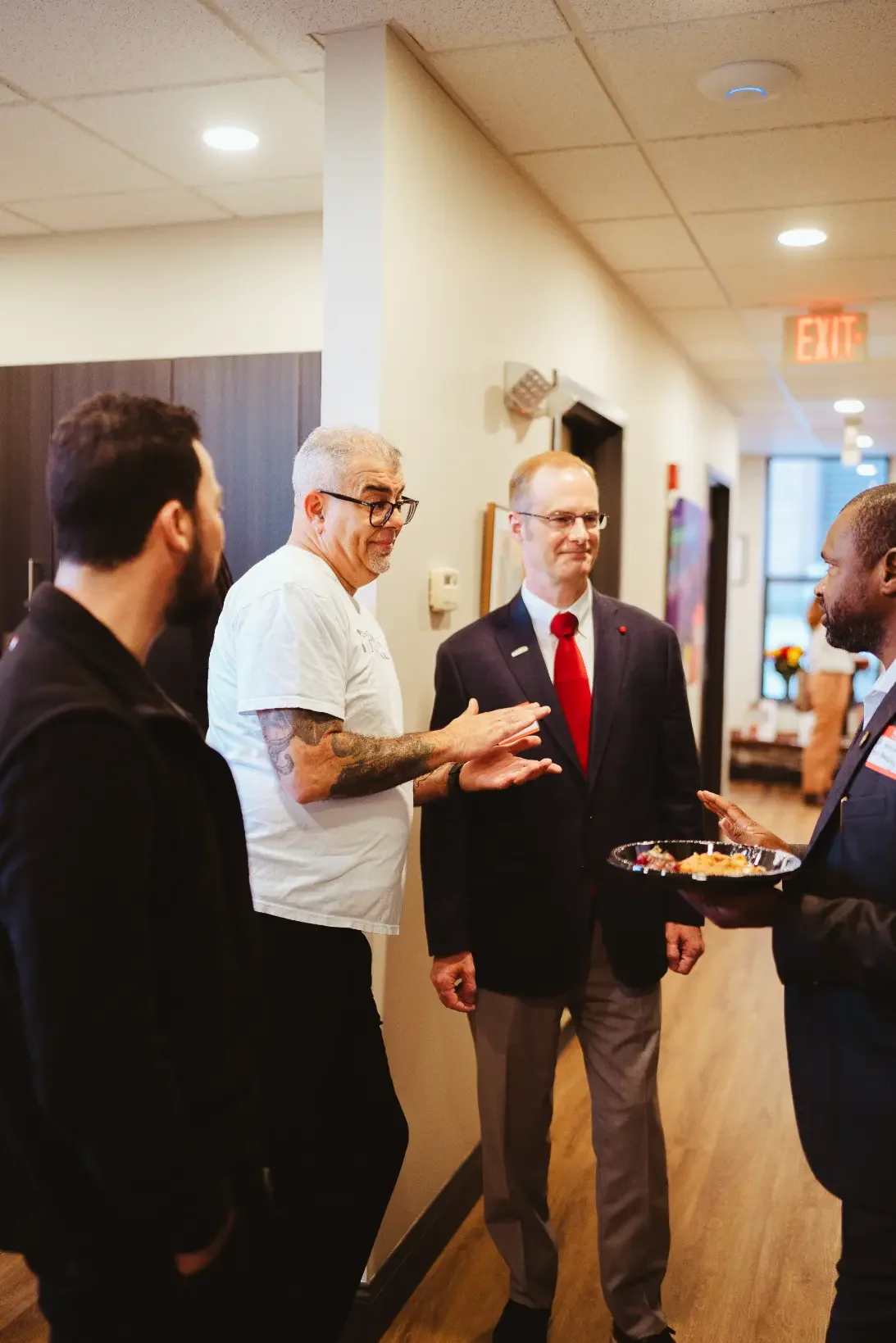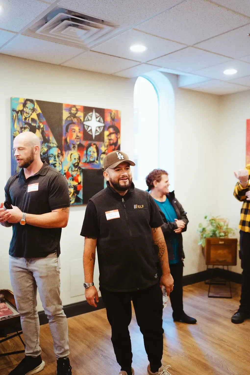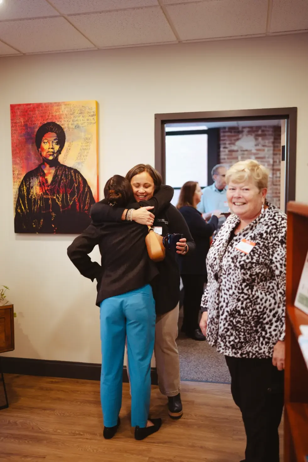 On October 8th, 2025, NHCJE hosted an Open House, to welcome our fellow community neighbors, allies, and colleagues to our new office space in downtown Manchester. The Open House featured an unveiling of a mural created by Positive Street Art for the NHCJE office.