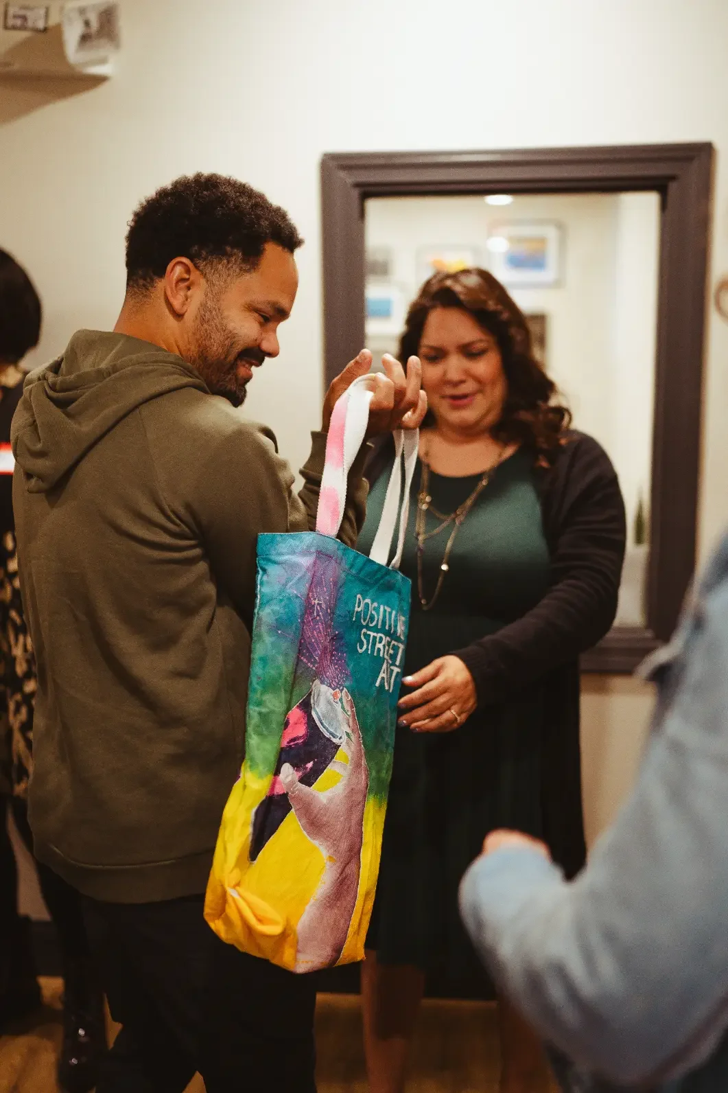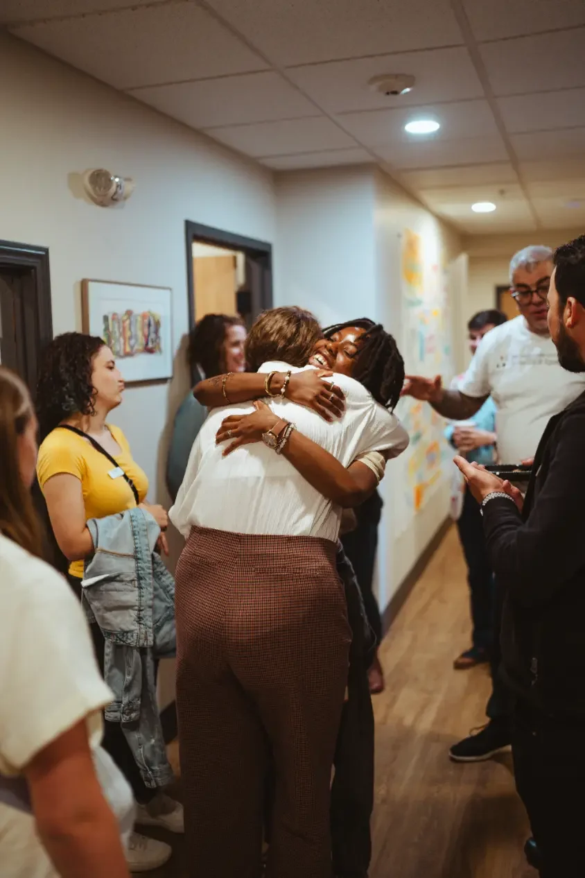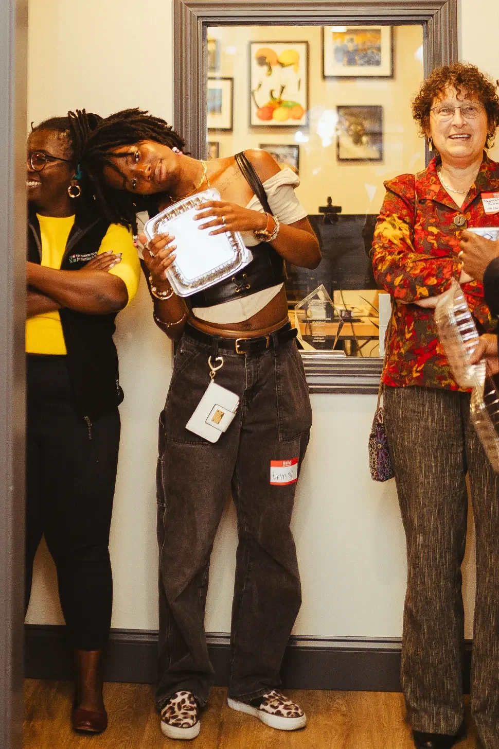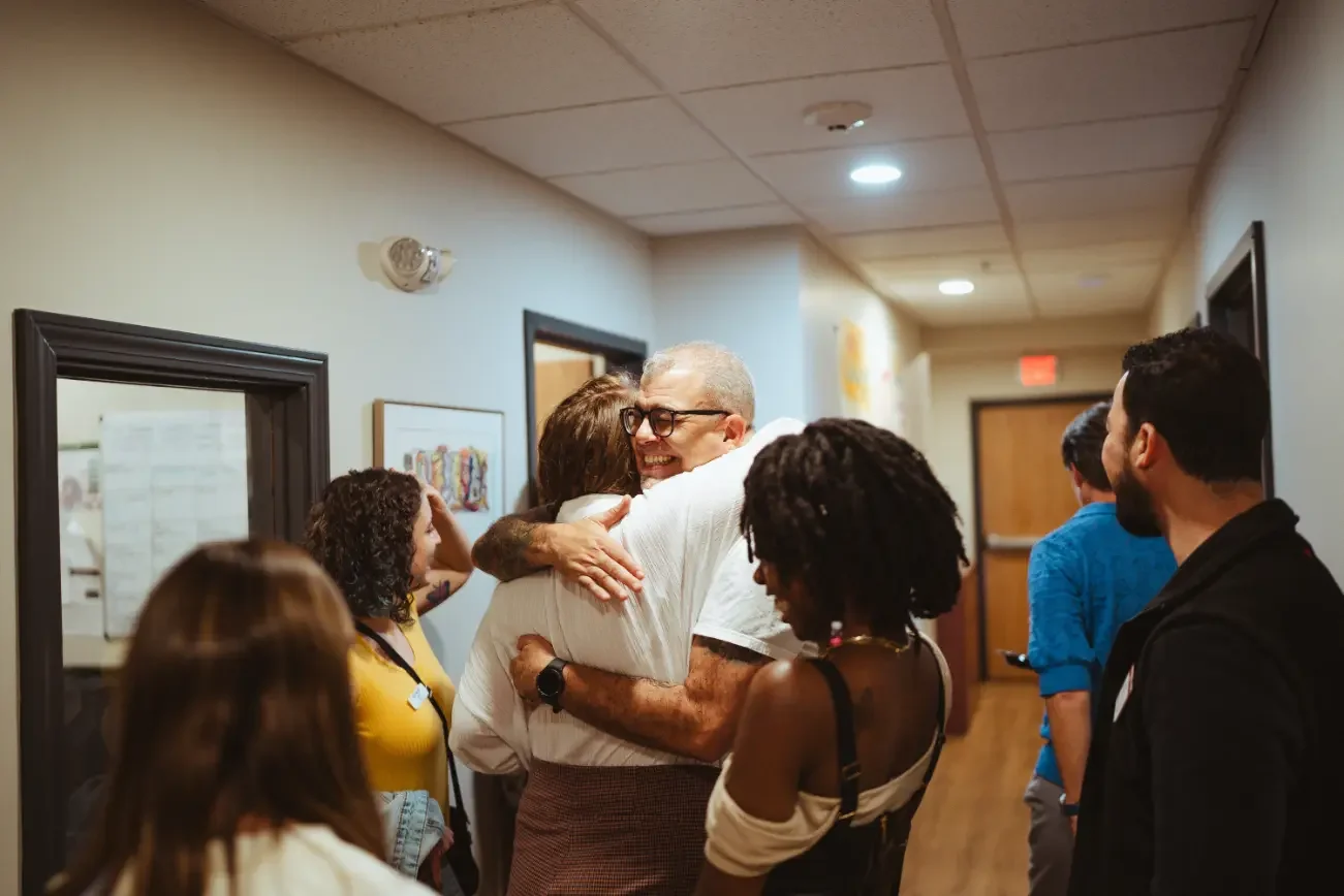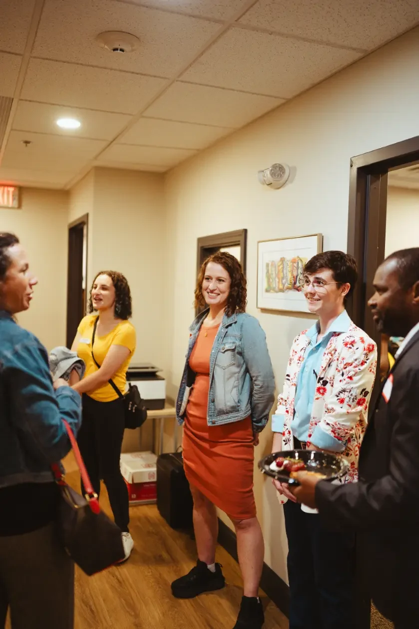 On October 8th, 2025, NHCJE hosted an Open House, to welcome our fellow community neighbors, allies, and colleagues to our new office space in downtown Manchester. The Open House featured an unveiling of a mural created by Positive Street Art for the NHCJE office.