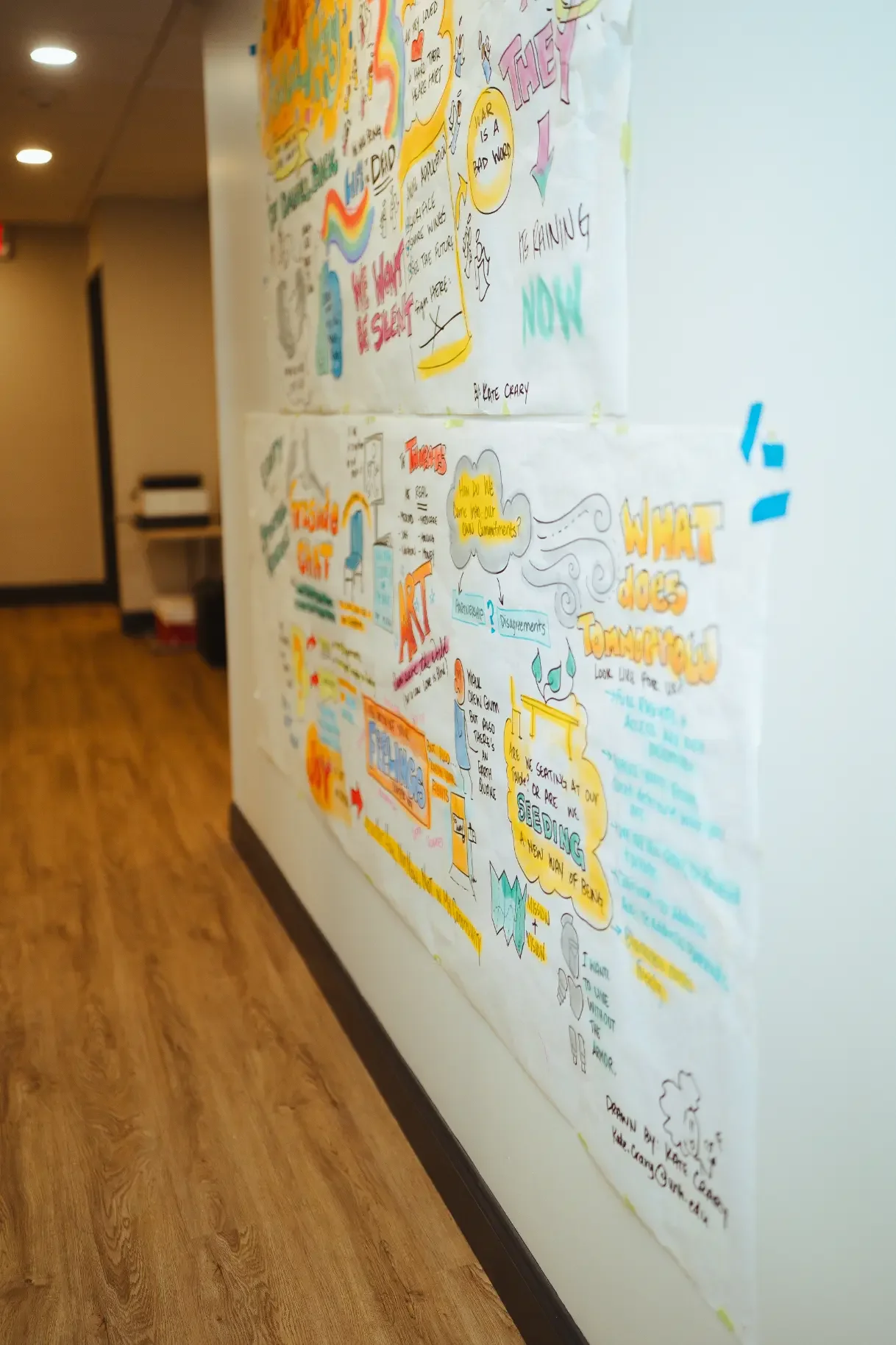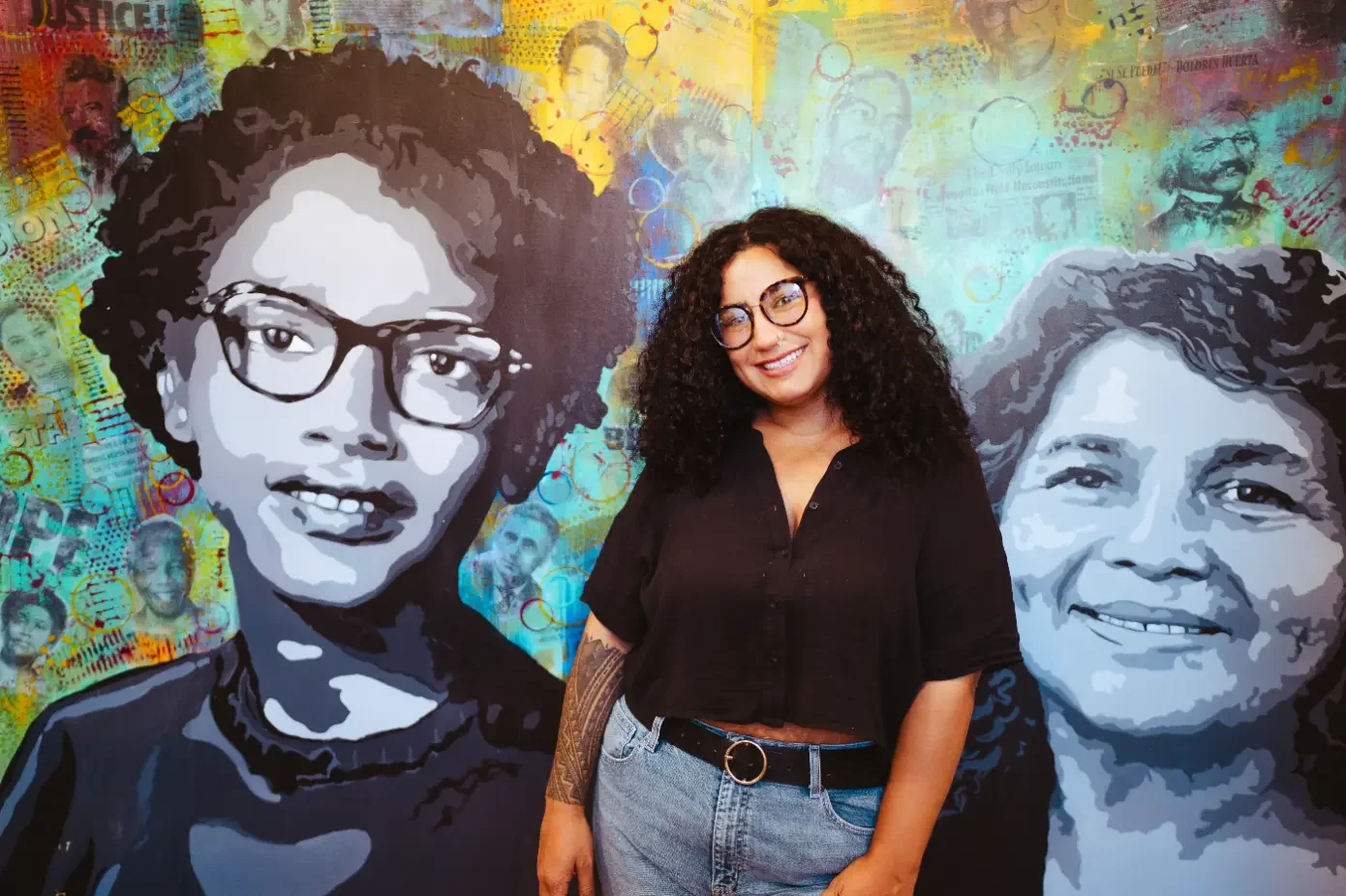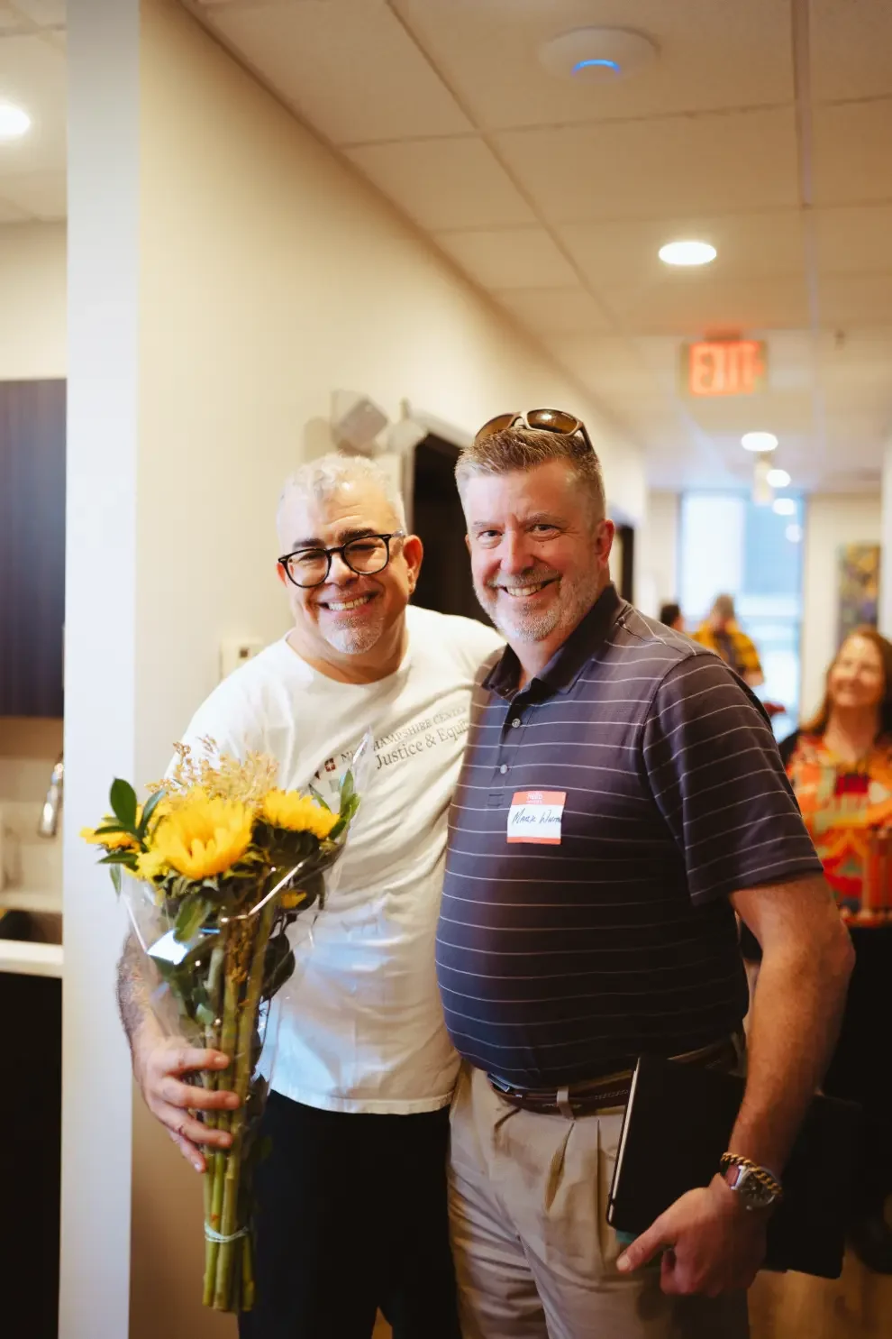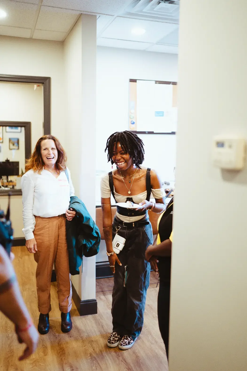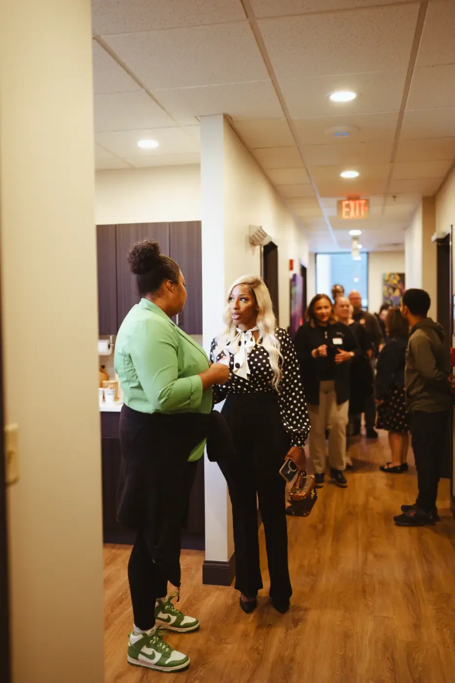 On October 8th, 2025, NHCJE hosted an Open House, to welcome our fellow community neighbors, allies, and colleagues to our new office space in downtown Manchester. The Open House featured an unveiling of a mural created by Positive Street Art for the NHCJE office.