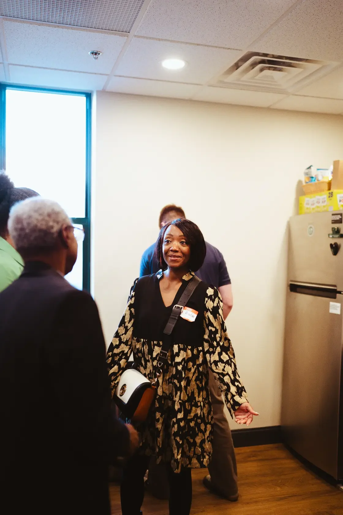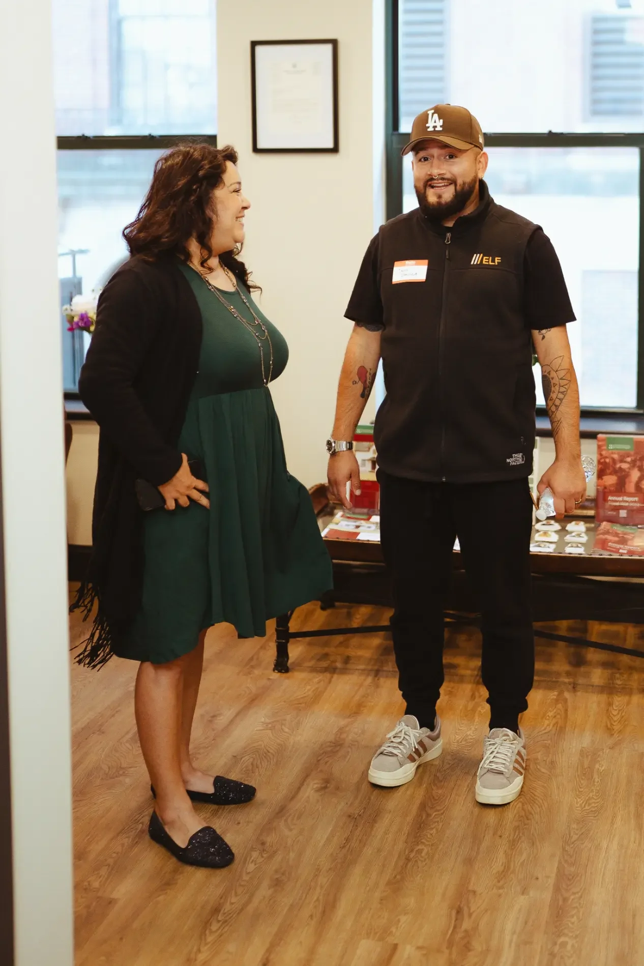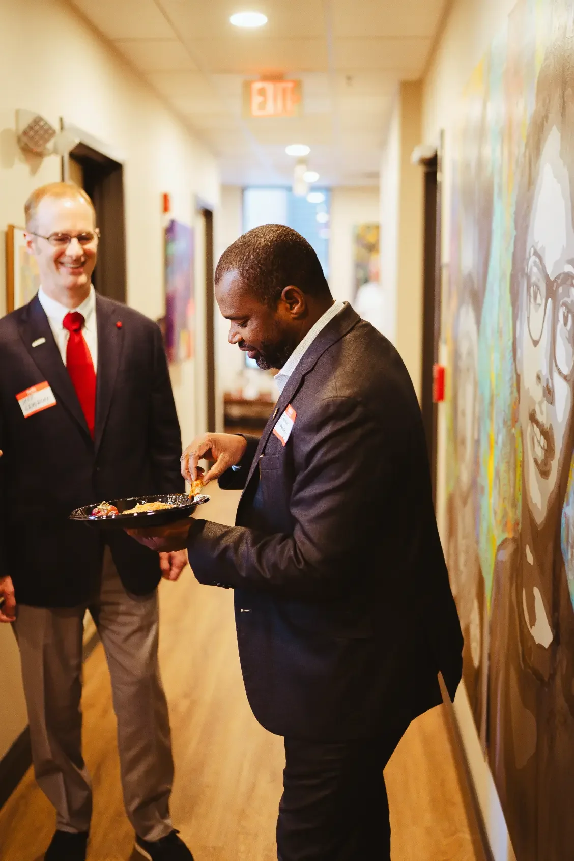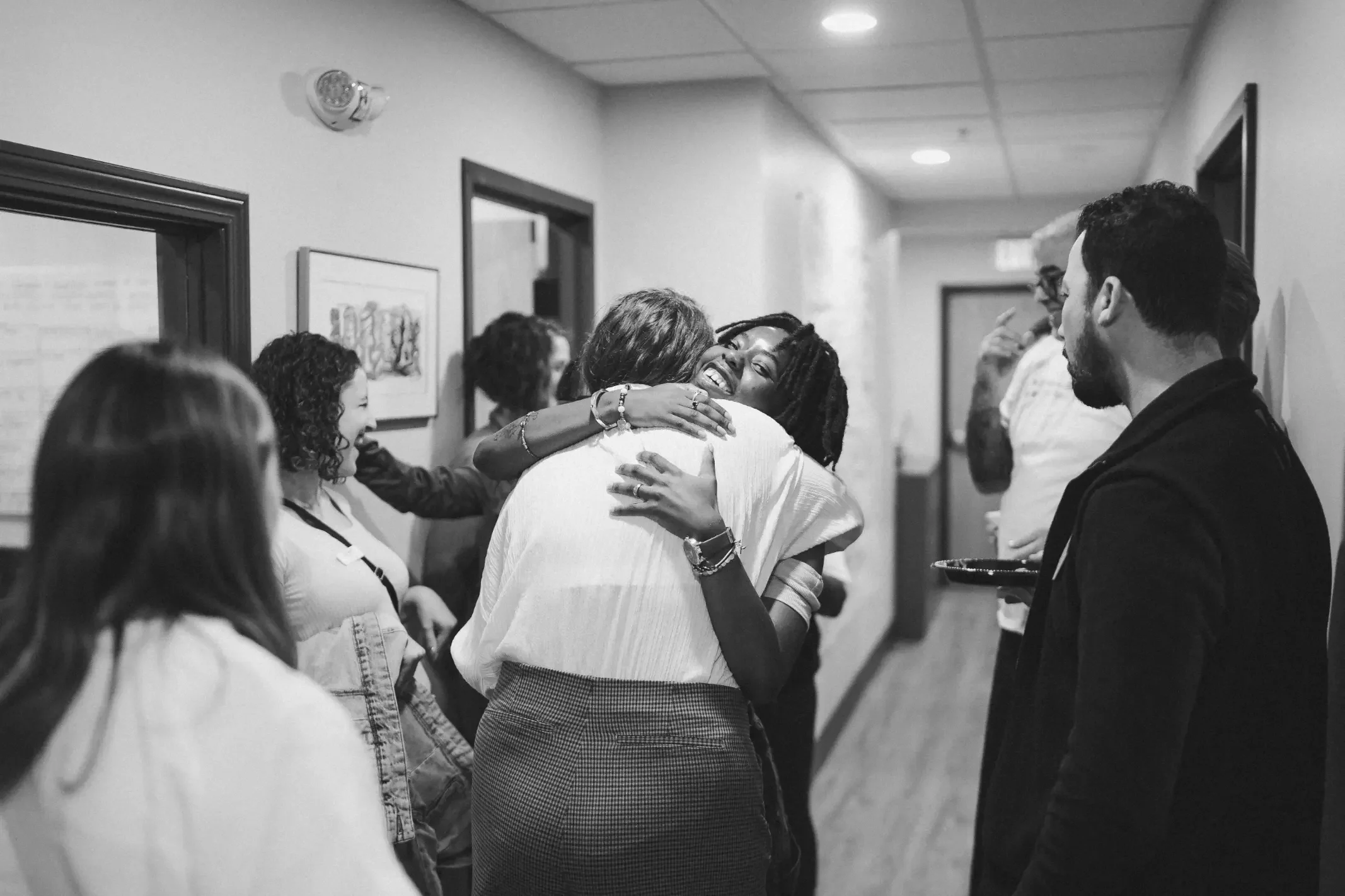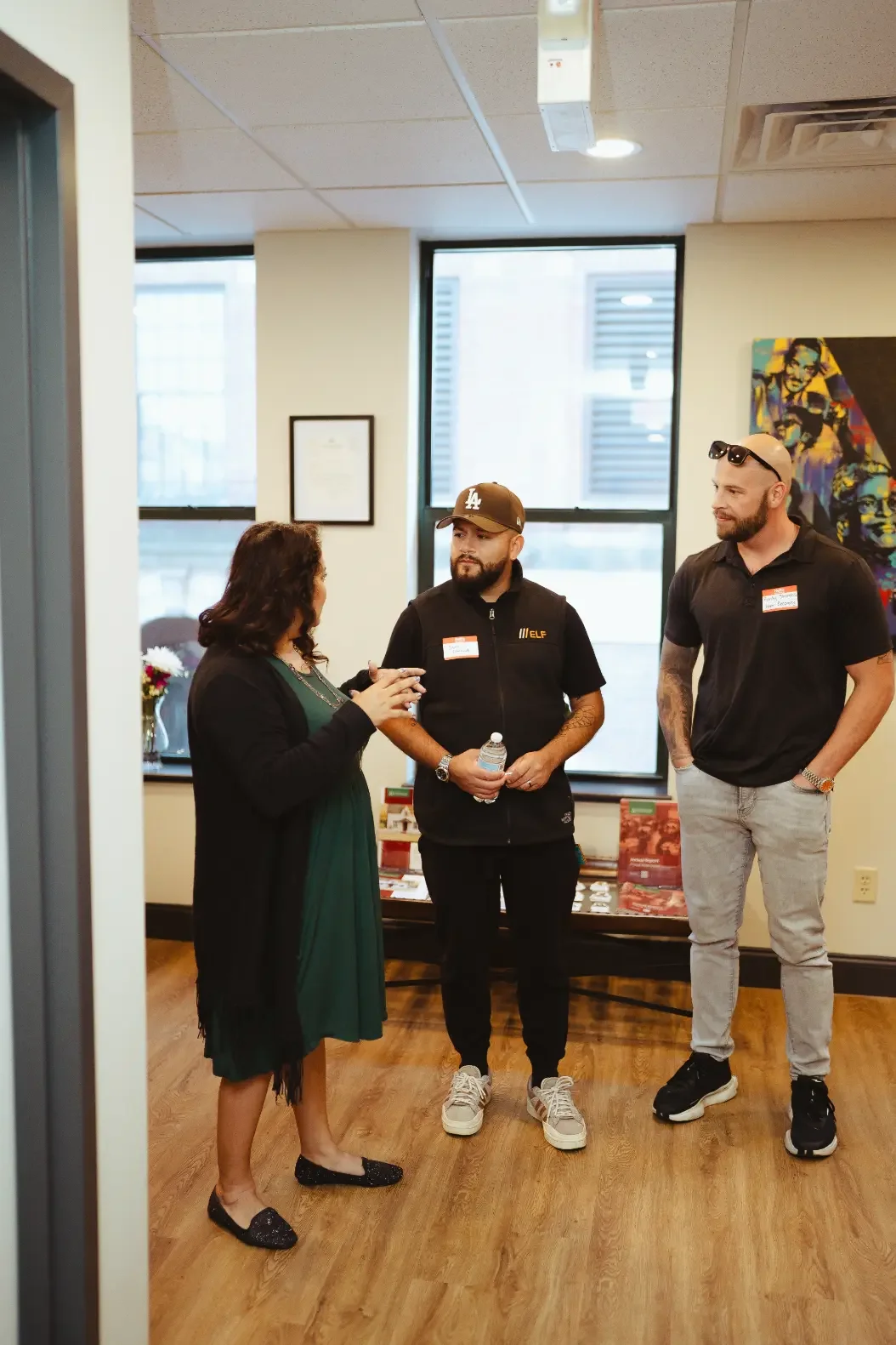 On October 8th, 2025, NHCJE hosted an Open House, to welcome our fellow community neighbors, allies, and colleagues to our new office space in downtown Manchester. The Open House featured an unveiling of a mural created by Positive Street Art for the NHCJE office.