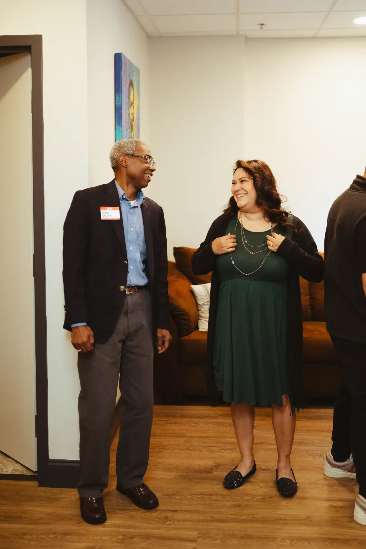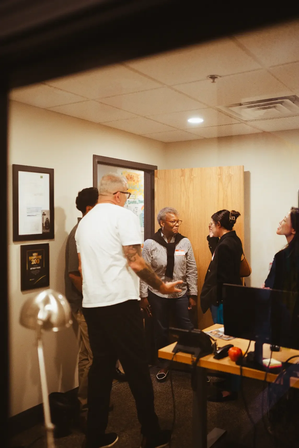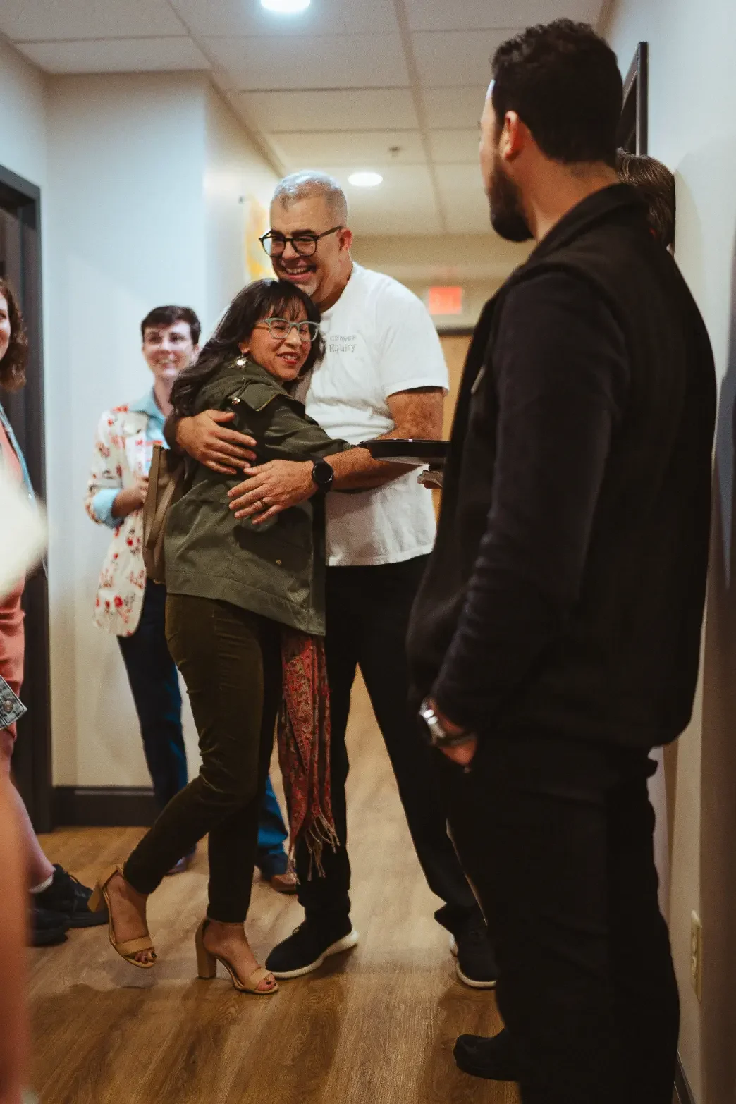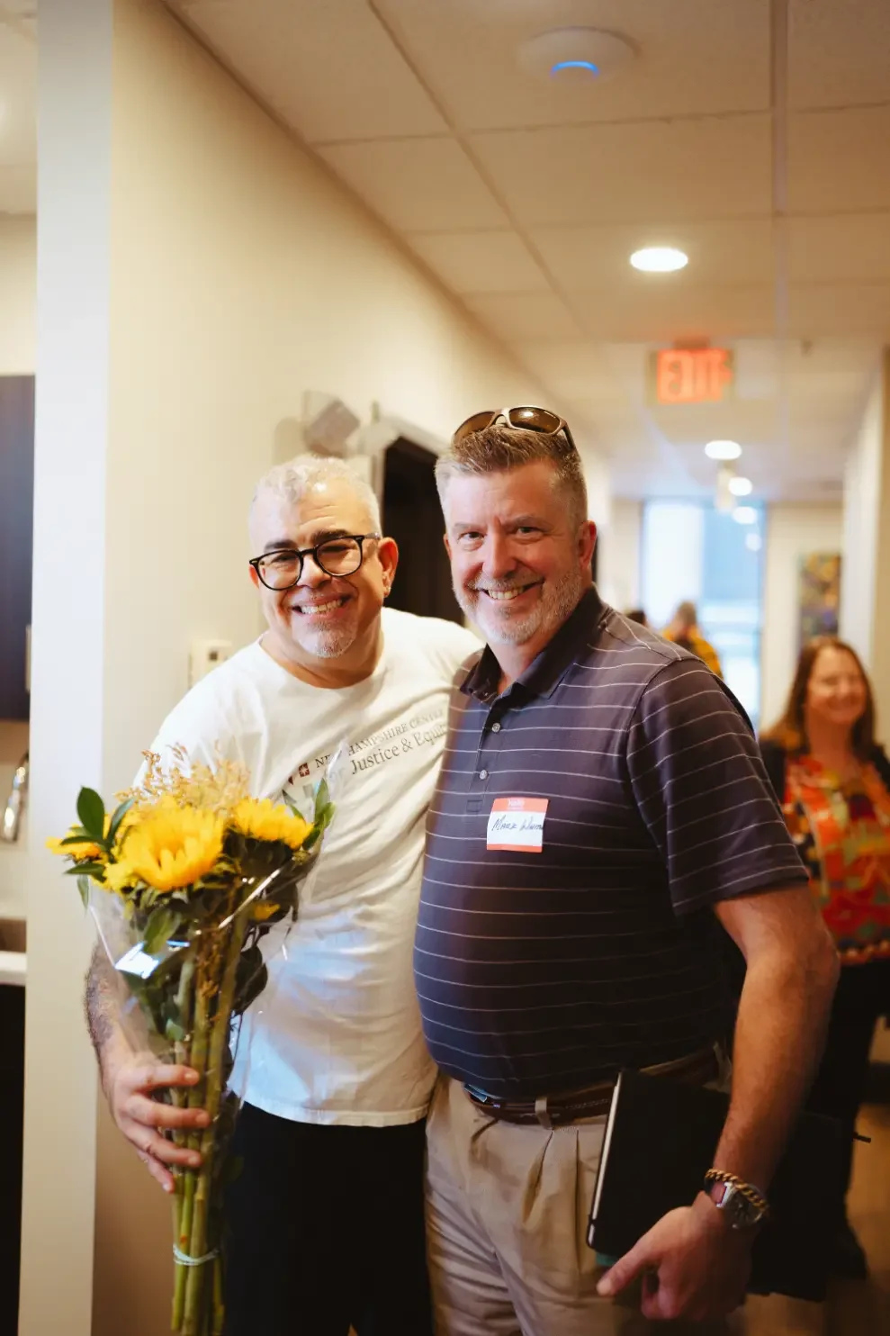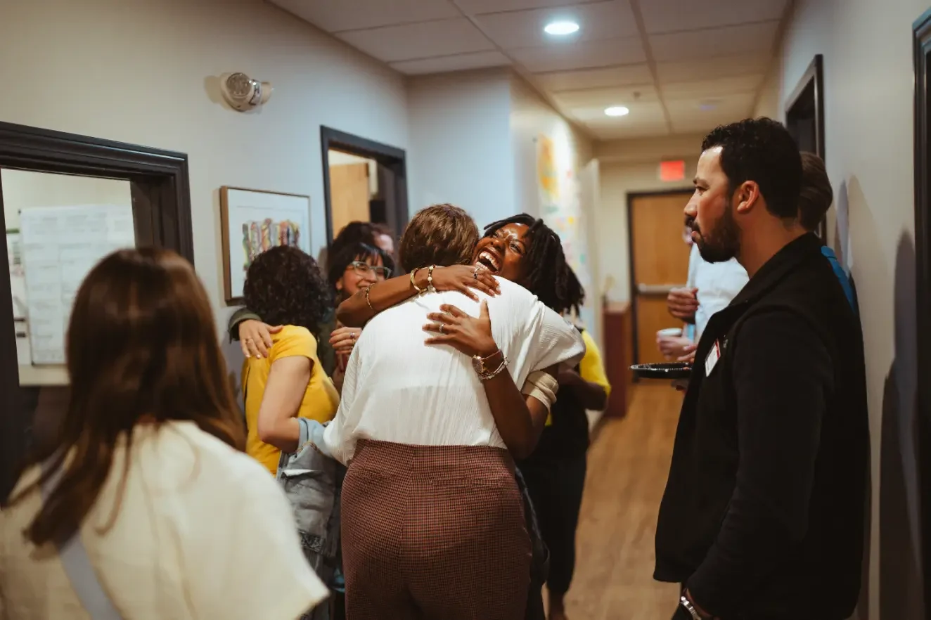 On October 8th, 2025, NHCJE hosted an Open House, to welcome our fellow community neighbors, allies, and colleagues to our new office space in downtown Manchester. The Open House featured an unveiling of a mural created by Positive Street Art for the NHCJE office.