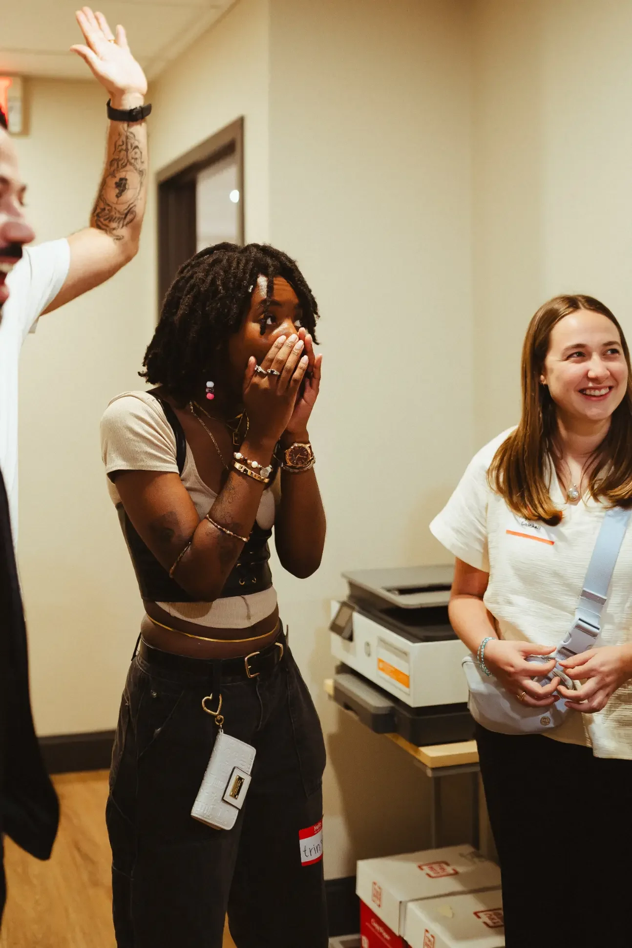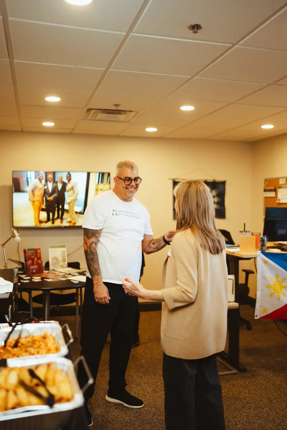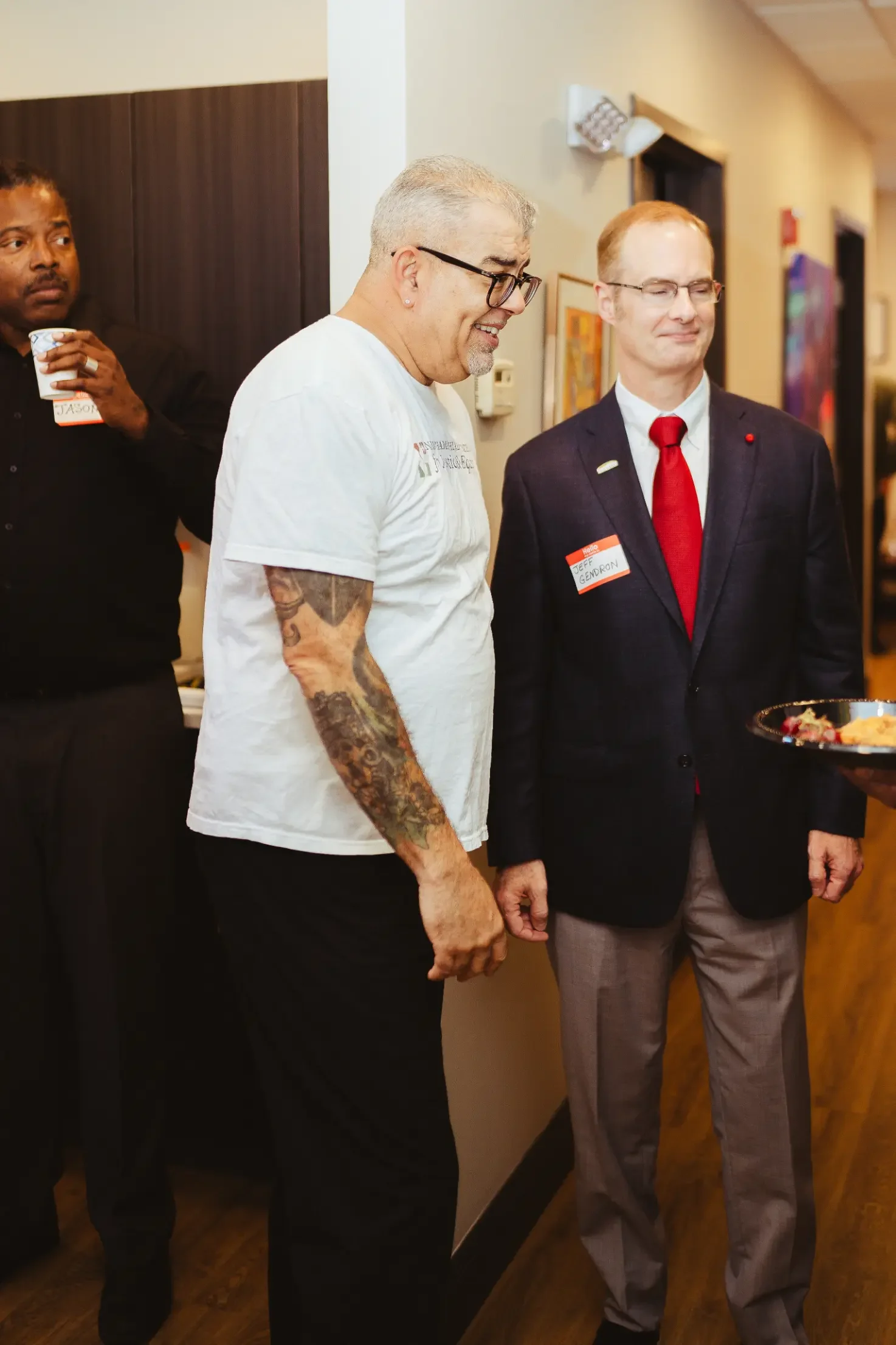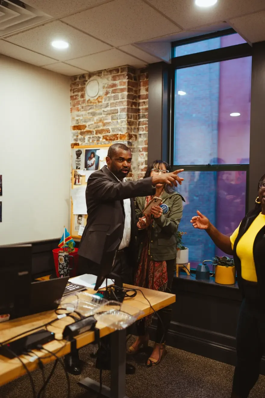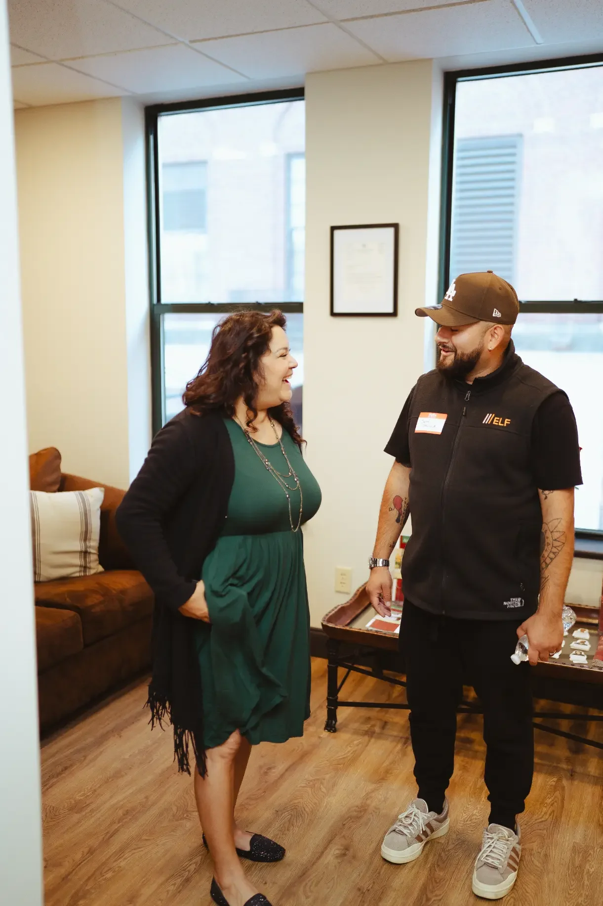 On October 8th, 2025, NHCJE hosted an Open House, to welcome our fellow community neighbors, allies, and colleagues to our new office space in downtown Manchester. The Open House featured an unveiling of a mural created by Positive Street Art for the NHCJE office.